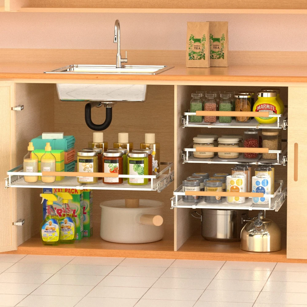 Expandable Pull Out Drawer Cabinet Organizers, Heavy Duty Slide Out Storage S...