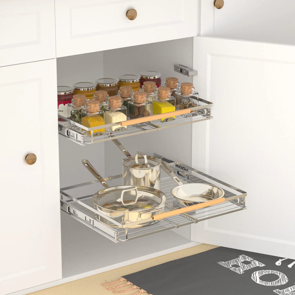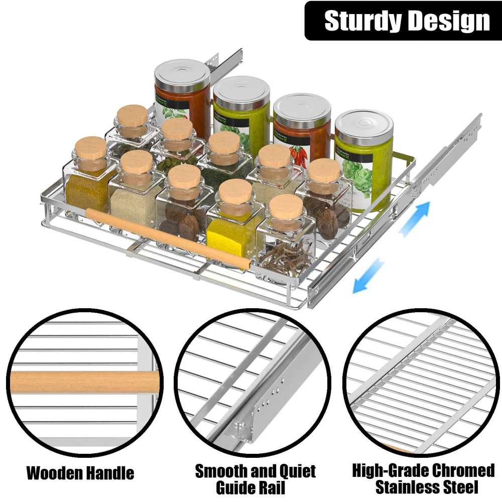 ✅【Space-Saving Cabinet Organizer】: The slide out cabinet organizer is designed to storage kitchen items and put the clutter away in order to give you a tidy home! The sliding drawer system suits for many places in your kitchen, such as cabinets, under sink, pot rack, cupboard, wardrobe, etc. And it's also suitable for bathrooms and laundry rooms, organizing cleaning supplies. ✅【Expandable and Pull Out Design】: The width of this cabinet drawers can be adjusted to your desire. The original pullout organizer measures 17.1" W x 22.4" D x 3" H. The width can be extended from 17.1” to 28” according to your needs. The slide out design makes kitchen organization easy to store and access. ✅【Smooth and Quiet Sliding】: The cabinet pull out shelves is manufactured with industrial-grade ball sliding system, Sliding out ultra-smooth even under the heavy weight of kitchen utensils (Such as kitchen mixers, pots and pans, dishes, plates and spices), Without unpleasant noise. ✅【Sturdy and Reliable Materials】: Our pull out cabinet organizers made of high quality chromed stainless steel, prevent scratches, not easy to rust and deform, and features excellent stability. Smooth surface and chrome color can be matched with various style of cabinets, suitable for variety of family styles. ✅【Easy to Install】: Please measure the size of your cabinets before purchasing. The installation method is very simple, just follow the instructions to complete easily. And the package includes the hardware required for installation. We are always responsible for our pull out drawers, Up to ONE YEAR replacement/refund service, please feel free to contact us if you with any issue.
