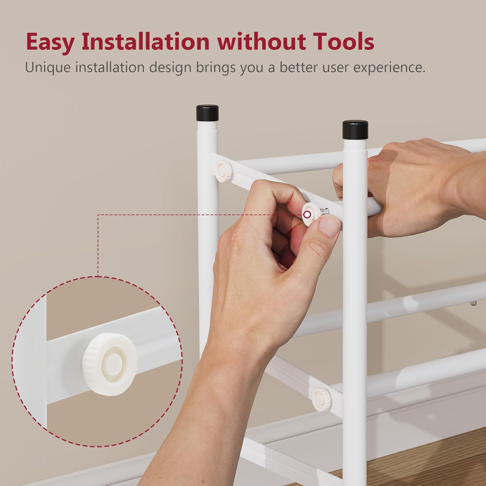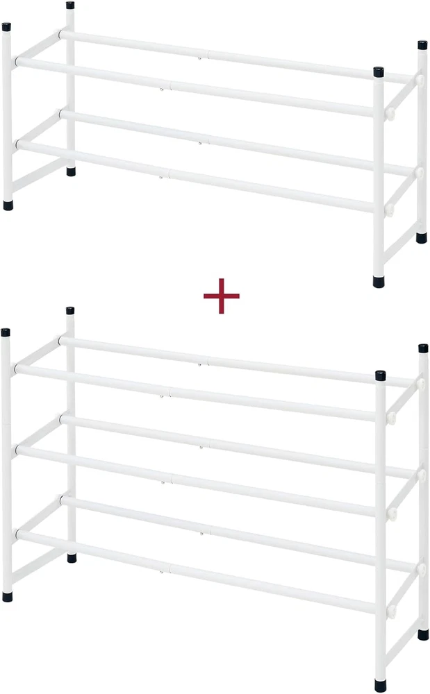 【2-Tier Shoe Rack】The shoe rack organizer makes perfect use of the awkwardly cramped space under your wardrobe and is the perfect choice for expanding your initial storage space 【Expandable & Adjustable】The size of the retractable shoe shelf can be adjusted according to your needs it can hold sundries in Entryway Doorway, and Bedroom. Dimension:28.74"W x 8.66"D x 13.58"H Fully expanded 41.73"W x 8.66"D x 13.58"H 【Customized Storage】Stack up to multiple units that maximize storage space in the same footprint. (Purchase 2 and more units to build storage vertically) 【Sturdy & Durability】Made of thickened metal tube with powder coated finish, our shoe organizer for closet is smooth and with strong corrosion resistance. Coming with 4 non-slip foot pad effectively enhances the stability of the white shoes rack. 【Easy to Assemble】Clear and detailed instructions, and numbered parts for assembly are included in the package to ensure you assemble the closet shoe organizer easily and quickly. Product description Knob Design Provide you with convenient installation. Extended Fixation The length of the shoe rack can be adjusted according to needs. Stackable Design Provide more possibilities for your storage space. Slanted Design Save more space for you. More Shoe Racks Add to Cart Add to Cart Add to Cart Add to Cart Add to Cart Add to Cart Customer Reviews 4.4 out of 5 stars 1,788 4.4 out of 5 stars 1,788 4.4 out of 5 stars 1,788 4.4 out of 5 stars 1,788 4.5 out of 5 stars 278 4.5 out of 5 stars 278 Price $22.99 $ 22 . 99 $19.99 $ 19 . 99 $22.99 $ 22 . 99 $29.99 $ 29 . 99 $62.99 $ 62 . 99 $47.99 $ 47 . 99 Number of Shelves 1 2 3 4 6 6 Color Black White Black White Brown & Black White & Gold Special Feature Expandable Expandable Expandable Expandable Large Capacity Large Capacity Feature Easy to Assemble Easy to Assemble Easy to Assemble Easy to Assemble Easy to Assemble Easy to Assemble Size 8.7"D x 41.7"W x 6.9"H 8.7"D x 41.7"W x 13.6"H 8.7"D x 41.7"W x 19.5"H 8.7"D x 41.5"W x 25.4"H 11.8"D x 29.65"W x 39.4"H 11.8"D x 29.65"W x 39.4"H