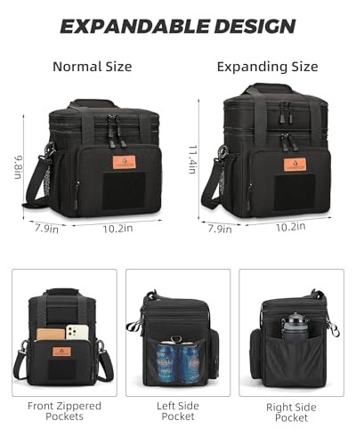 Expandable 16L Tactical Insulated Lunch Cooler Bag A-Black