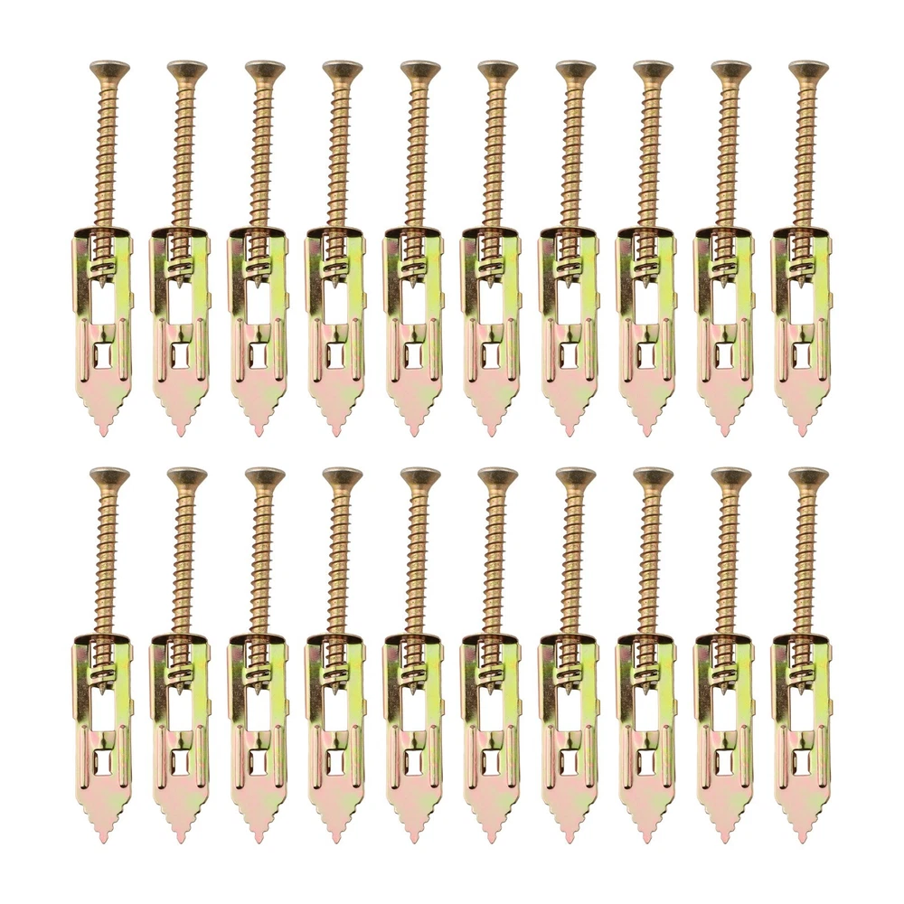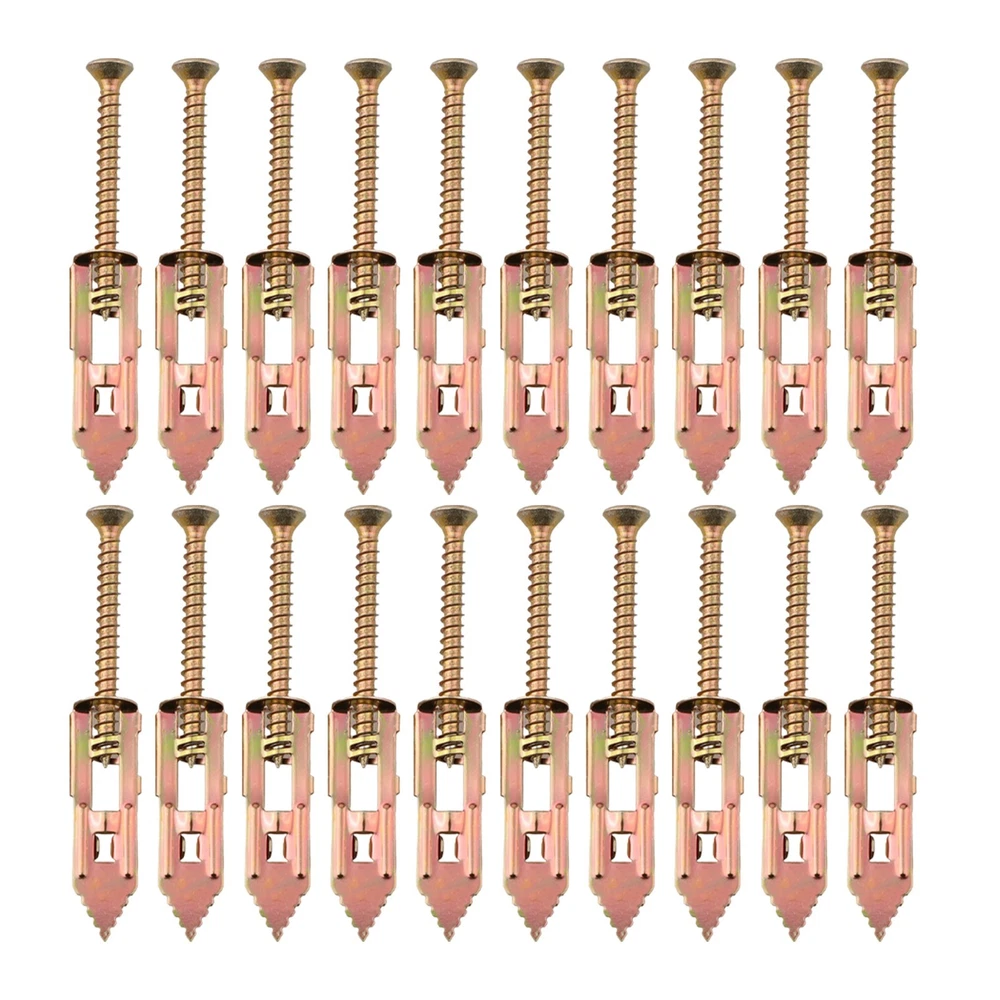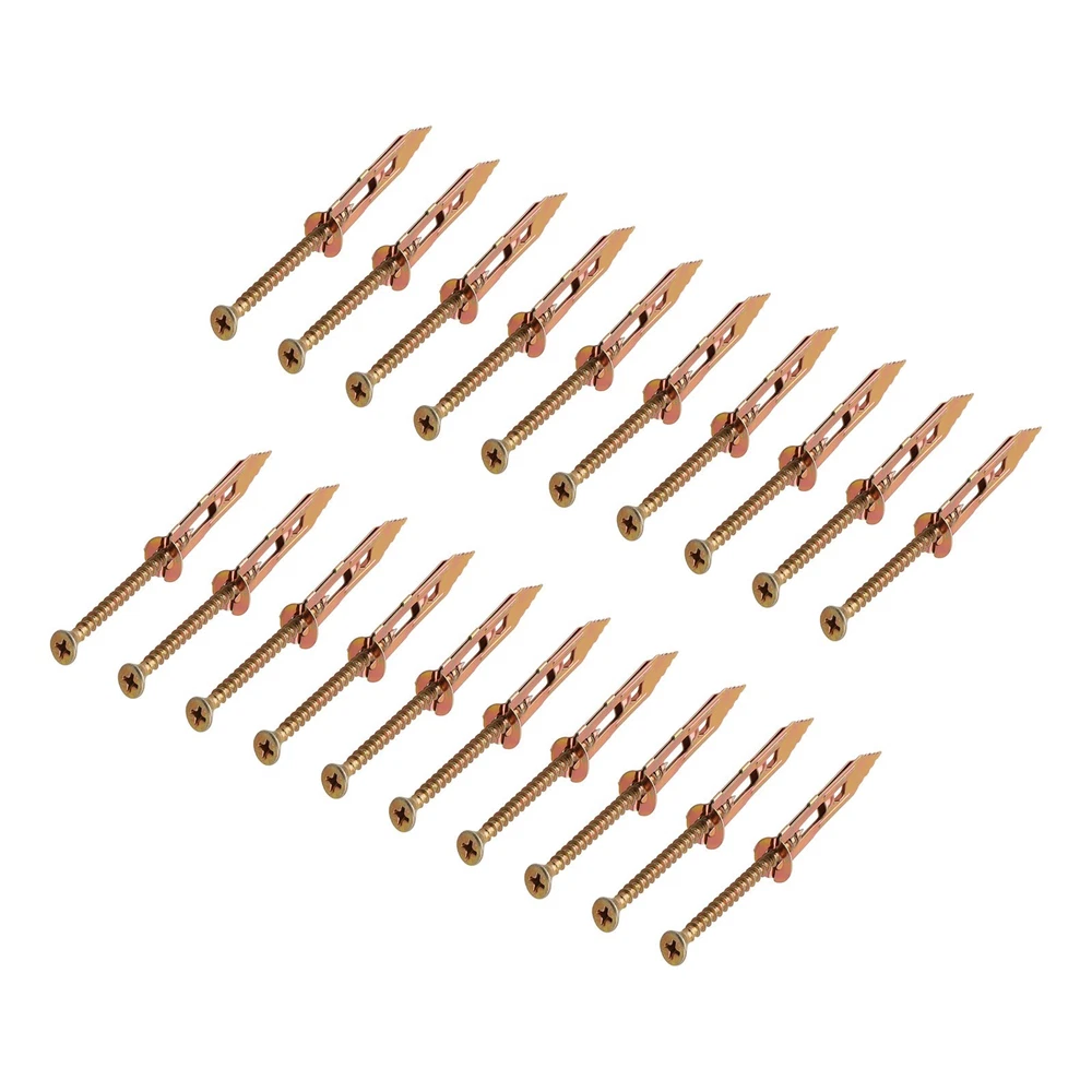 Product Description Features: *Made of carbon steel: This product is made of carbon steel, providing a sturdy galvanized structure and maximum durability. *Easy to use: The conical self-drilling anchor bolts make installation and removal easier, saving energy. *No drilling required: No need to drill holes in the wall. When removing the anchor bolts, only leave a width of 1-2mm on the wall, obstruct any damage to the wall. Avoid leaving any holes after use. *Wide application: It is widely used for drywalls, gypsum boards, lightweight brick walls, . It is perfect for hanging various items in home decoration, su ch as picture frames, wall lights, curtains, clocks, . *Expansion design: As you tighten the screws, the cracks on the grooved anchor bolts expand on both sides, increasing the fixing force. Specifications: Part Name:Expansion Anchor Material: Steel Size:40mm/30mm Color:copper Package Content: 20pcs*Expansion screw Note: 1. The real color of the item may be slightly different from the pictures shown on website caused by many factors such as brightness of your monitor and light brightness. 2. Please allow slight manual measurement deviation for the data. Payment Payment must be completed within 5 days. If you have any problems about payment, please contact us via message. Delivery details We only ship to confirmed Order addresses. Please comfirm that your Order address is in line with your shipping address. Please kindly note that the c ombined shipping is not provided because the shipping fee is calculated by weight. Also, the each additional item means exactly the the same color and size. It takes about 7 -15 working days to US; about 10-30 working days to other countries. for TRANSIT time may be a little delayed because of the bad weather and customs inspection . If you do not receive your item within 30 working days since payment finished, please contact us immediately for further assistance. Contact us We strive for 100% customer satisfaction! Positive is very important to us. If you have any questions, p lease feel to contact us via "Ask seller a question" . We will reply your email within 24 working hours.