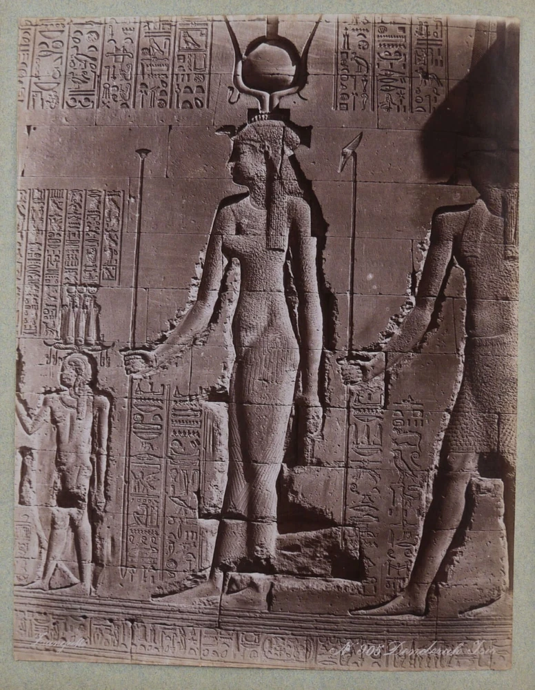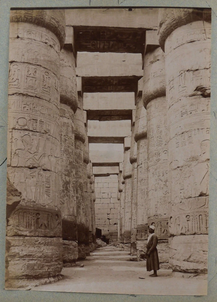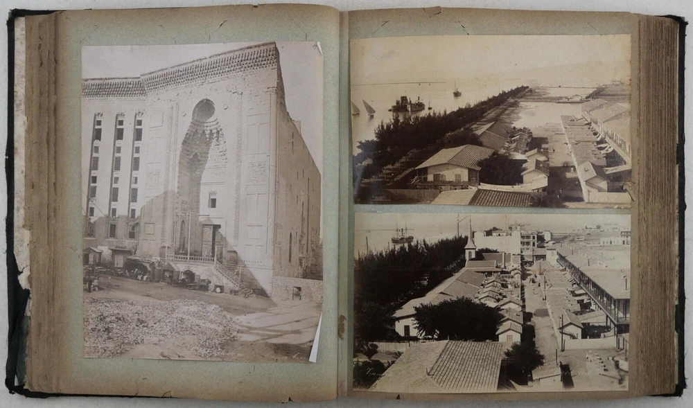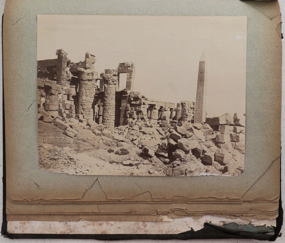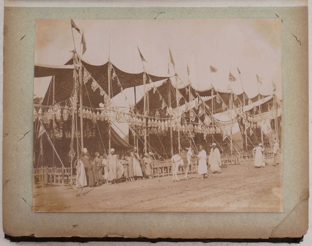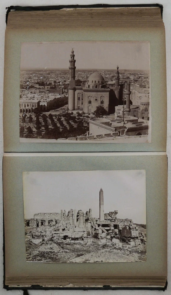 EGYPT Zangaki Brothers (ca. 1880s-1890s); Beato, Antonio (-1906); Maison Bonfils (1867-1939); Sébah, Pascal (1823-1886); Sébah, Johannes Pascal (1872-1947); Arnoux, Hippolyte (active ca. 1860s-1900); Lékegian, G. (active ca. 1887-1925); Fiorillo, Luigi (active ca. 1870s-1890); Maison Garrigues (active ca. 1870s-1911); Neurdien Fréres (active ca. 1870s-); Perdis, P. (active ca. 1890s-1905); & others. Album of 139 Albumen Studio Photographs of Egyptian Cities (Cairo, Alexandria, Port Said), the Suez Canal, and Egyptian Temples (Philae, Dendera, Luxor, Karnak, Wadi es-Sabua, Edfu), etc. Ca. 1870s-1890s. Folio (ca. 35x28cm or 13 ¾ x 11 in). 71 leaves. 139 mounted albumen photos from ca. 24.5 x 15.5 cm (9 ½ x 6 in) to 28 x 22 cm (11 x 8 ½ in). 81 are captioned in negative, 79 are numbered in negative. Period dark green quarter morocco and cloth boards album; spine with raised bands; moire endpapers. Both boards with water damage on extremities, several mounts with tears and minor losses on extremities not affecting images, some photos mildly faded, several with minor tears or losses on corners, but overall a very good collection of strong interesting photos. An extensive collection of large early albumen photographs of Egyptian cities and antiquities, as well as three views from Ottoman Syria, Tunisia, and Palestine. Forty-seven photos are signed by or attributed to the Zangaki Brothers, sixteen are signed by or attributed to Antonio Beato, and seven are signed by or attributed to Maison Bonfils. The 136 views of Egypt include Egyptian temples and antiquities; the Philae temple complex (Temple of Isis, bas-reliefs), the Dendera Temple complex (Temple of Hathor, bas-reliefs), Luxor Temple (Pylon of Ramesses II, Statue of Ramesses II), the Karnak Temple Complex (Great Hypostyle Hall, lotus columns, Avenue of Sphinxes, Pylon of Ptolemy), the Colossi of Memnon, the Temples of Wadi es-Sabua, the Temple of Edfu, and bas-reliefs from the Temple of Seti I, the Tomb of Ramesses IX, and the Tomb of Nakht (TT52). It also contains an image of the statue of Khafre and a view of the Great Pyramids of Giza. Also included are views of Cairo, including the Muhammad Ali Mosque and Ablution Fountain, Abdeen Palace, the Cairo Citadel, and the City of the Dead; Alexandria, including the aftermath of the Bombardment of Alexandria (1882), taken by Luigi Fiorillo; and the Suez Canal, including Port Said and the Hotel Eastern Exchange, Port Tewfik (Suez Port), and Lake Timsah. Additionally, there are three views of a street in Tunisia, Mount of Temptation in Palestine, and the Temple of Jupiter in Baalbak, current-day Lebanon. Overall, an extensive collection of strong early studio photographs of Egyptian cities and antiquities. #PD49 ABOUT US Globus Books is an independent San Francisco-based bookshop and a member of the American Booksellers Association and the Antiquarian Booksellers Association of America and has been in business since 1971. Globus Rare Books and Archives is the department within Globus Books that specializes in rare travel and exploration related items from around the world with an emphasis on the Americas, the Pacific and Russian explorers and travellers. GUARANTEE All items are guaranteed to be as described. Purchases may be returned for any reason within ten days of receipt for a full refund or credit, but please notify us of any returns in advance. Returns should be adequately packed and insured. SHIPPING We offer free shipping worldwide on any purchases over 500 USD. All orders are properly packed with care and attention and shipped within 2-3 business days. FEEDBACK We leave feedback for buyers once they have left feedback for us. Please contact us immediately in the case of a rare problem and we will try our best to resolve any issues promptly. Customer satisfaction is very important to us. PAYMENT METHODS We accept Mastercard, Visa, Paypal, Venmo, bank transfers and $US checks.