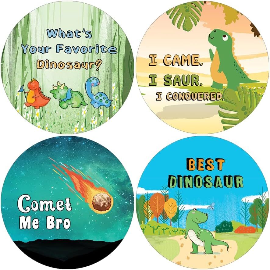 16 UNIQUE DESIGNS INSPIRING STICKERS FOR YOUR DIY PERSONALIZED DECORATIONS - Creanoso Awesome Dinosaurs Stickers (10-Sheets). These colorful and uniquely inspiring round shaped stickers are the best tool for DIY decoration and personalization of your belongings. GREAT STOCKING STUFFERS , TEACHING SUPPLEMENTARY MATERIALS, AND GIVEAWAY - Great stocking stuffers gifts for Boys, Girls, Teens, Kids. A perfect design to give during classroom school activities, home schooling,birthdays, anniversaries, family day, and any other special occasions. MADE WITH DURABLE AND WATERPROOF MATERIALS - There is a lamination or coating to make the stickers high water resistant, and WILL NOT fade from the water. The stickers can stick it anywhere you like, and it sticks there and lasts a long time. A COLORFUL AND DECOR STICKER DECAL - Each sheet with 16 individual round stickers. There are 10 sheets , with a total of 160 pcs of stickers. STICKER SIZE: 1.5 INCHES IN DIAMETER Awesome Dinosaurs Stickers (10 Sets X 16 Designs) COLORFUL AND COLLECTION OF TEXT STICKERS • Well designed. • Very encouraging. • Self-adhesive. Awesome Dinosaurs Stickers (10 Sets X 16 Designs) are super fun to collect; you can't have just one! That's why you will find a selection of stickers right here. Each package comes with different stickers in a variety of designs. Stick them here, stick them there, stick them everywhere! Everyone will love these self-adhesive stickers. These colorful stickers are perfect for any adults and these come with very inspiring messages and bright pictures. A fun, inexpensive way to add a decorative, notes, and stationery. Delight yourself with uplifting messages designs that are very encouraging. Awesome Dinosaurs Stickers (10 Sets X 16 Designs) perfect for giveaways, behavior incentives, prizes! These stickers are acid-free, nontoxic, and safe for use on photos. This product comes with a 60 days money back guarantee. You can return them to us for a full refund.