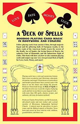 Publisher:Lucky Mojo Curio CompanyBook Title:A Deck of Spells: Hoodoo Playing Card Magic in RooFormat:PaperbackNumber of Pages:96Language:EnglishAuthor:Charles Porterfield