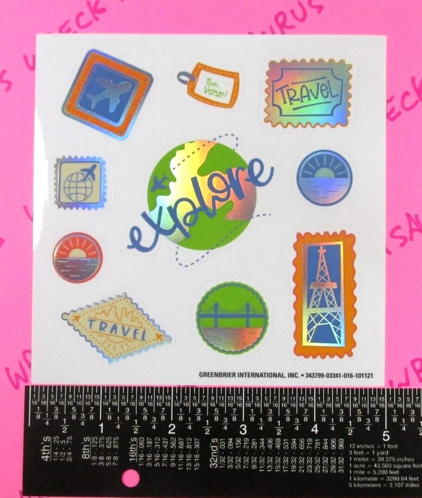 Sticker Sheet Is New. Sticker Sheet Is Small. Sticker Theme Is Explore Travel Sun Bridge Airplanes Paris. Sticker Sheet Is Metallic Style Reflective. When Purchasing Multiple Sticker Sheets Or Packs Please Add All Items To Cart Before Purchase So That Your Purchase Combines Down To Base Shipping Price. All items are shipped WITHOUT tracking in an envelope with cardstock.