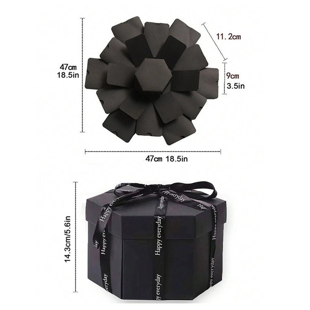 Explosion Gift Box, Handmade Exploding Photo Album Preassembled Surprise Black Product Description Bullet Points: Surprise Delight Factor: Make your special moments unforgettable with Love Present Box. This unique design comes decorating with ribbons and heart-shaped cards. The 6-sided, 5-tier album unfolds layer by layer, providing a great canvas for you to decorate with colorful pens, photos, and stickers. Captivating Love Experience: Featuring a unique 6 sides, 5 tiers, and 12 pockets design that blows up when opened, this lightweight and practical love present box is crafted from sturdy kraft paper Light Weight: The Love Present Box's small size, portable design, and lightweight construction makes it a great travel companion. Carry it effortlessly to enjoy your memories outdoors Extensive Use: Lift your present-giving game with our Love Present Box, thoughtfully chosen to suit various celebrations like Valentine's Day, Christmas, Mother's Day, Thanksgiving, and birthdays. Your loved person will feel extra special Unique Present: Impress your loved person with this Love Present Box, specifically designed to express your warm affection, a great present for family, friends, and colleagues to cherish This 6-sided 3D greeting card is a 5-tier surprise album that unfolds layer by layer. It's lightweight and practical, making it easy to carry. Specification: Name: Love Present Box Material: Pper Packing List: 1* 3D Greeting Card Note: Due to different lighting and screen settings, the item color may be slightly different from the picture. Due to different manual measurements, please allow a 1-2cm difference in size. Payment 1.PayPal is a preferred Payment method. if you Do NoT have a Paypal account, please go to www.paypal.com register. 2.You can make a Credit payment via Paypal.Paypal will let you use MasterCard,Visa to pay. 3.Payment should be completed within 3 days after auction closed, or unpaid dispute will be filed for an closing auction.An unpaid case will be filled after 4 days. Delivery details 1. We ship to many countries. 2. Delivery Time: Ship from China via Speedpak to US (takes 8-12 days) Ship from China via others shipping method to other countries (takes 15-60 days) 3. If you want to choose another address, please leave us a message on ebay.Please check your shipping address carefully before checkout,it can't be changed if order completed. Seriously promise:Refund or resend will be offered if item still not arrive in 7-10 business days. Just send us an email,we will give you a satisfied solution as soon as possible. Return policy 1.All item comes with Basic 3 Months Sellers Warranty, if item defective in 3 months,We will offer replacement without extra charger (including shipping fee) After we receive the defective item. If item Defective after 3 Month, Buyers can still send it back, We will contact suppliers or Manufactory for Warranty. Buyers Might Need pay the Shipping fee For resend the replaced item. 2.If item DOA(Dead of Arrival), Buyers can return it in 30 Days, we will replace it with new item after we receive DOA item. Please Contact us Before you sent the item back. 3.All item can be returned for exchange only. The buyer has responsibility for all return shipping including DOA or defective return. About Feedback When you receive the item and satisfied with the product, please leave positive feedback and 5 scores DSR. We will leave a 5 Scores DSR feedback for you. If, for any reason you are not satisfied with your purchase, please contact via Ebay Message and we will do our best to resolve it. Please don't leave neutral or negative feedback without any communition with .