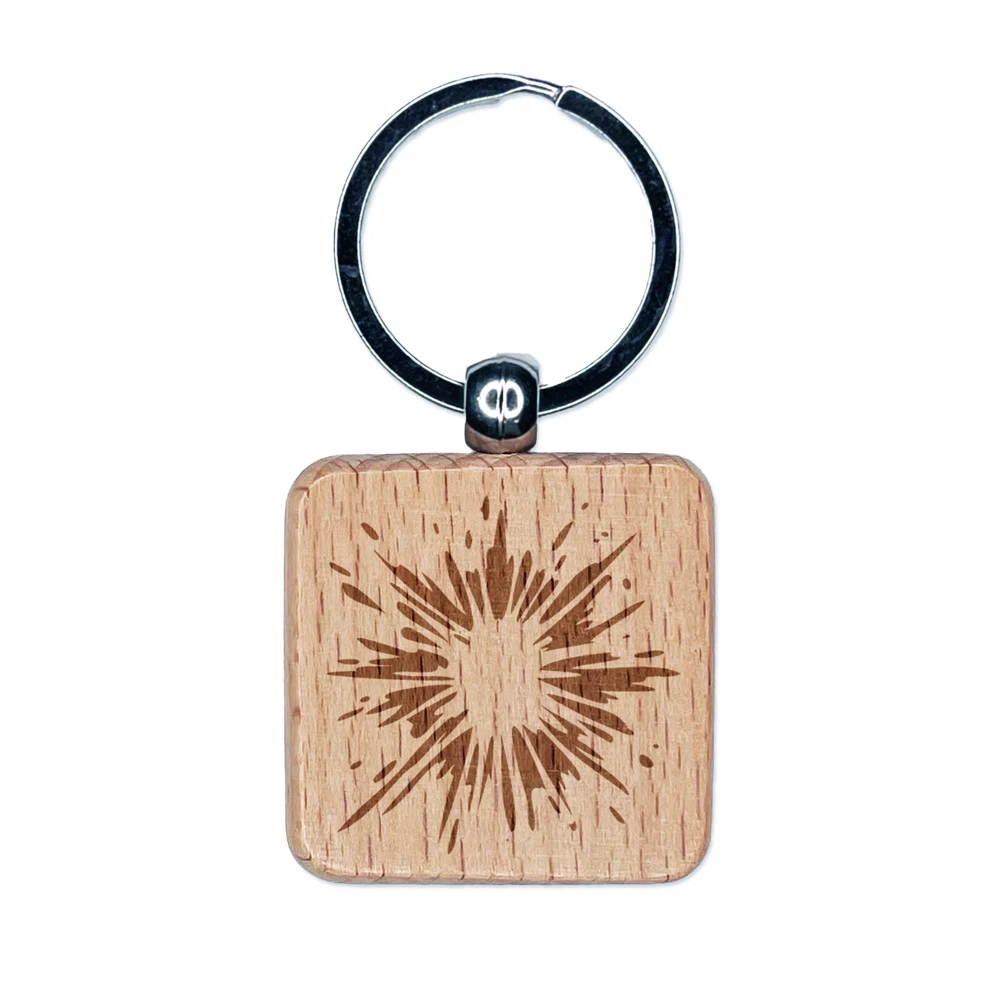 Explosion Splash Streaks Engraved Wood Square Keychain Tag Charm