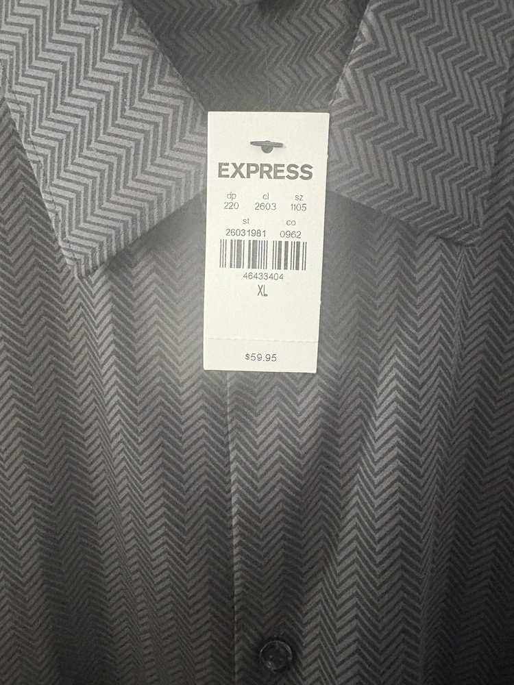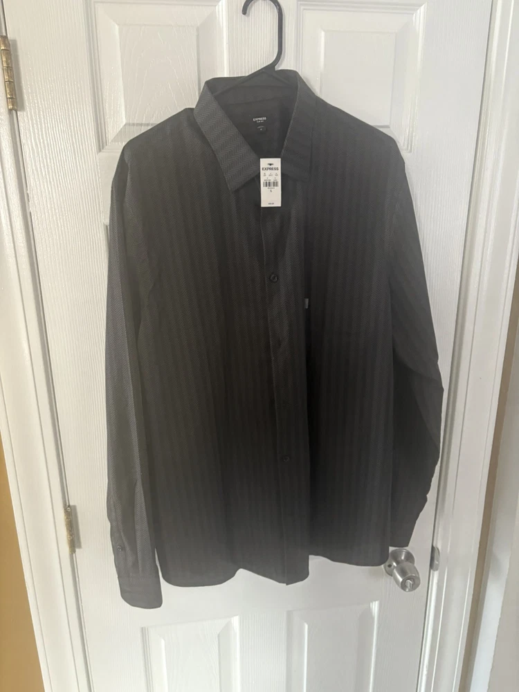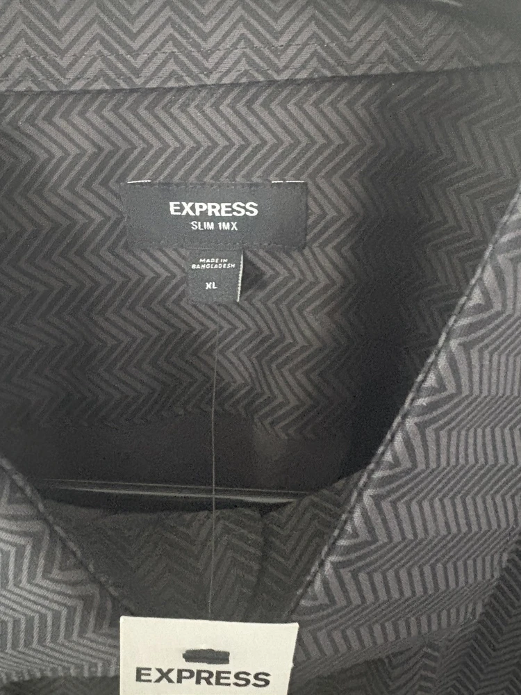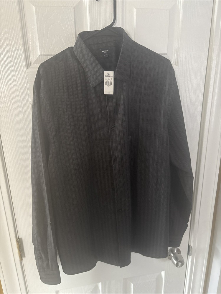 Express Button Up Shirt Mens XL Black / gray Long Sleeve Dress