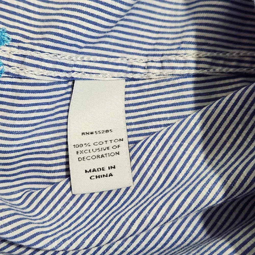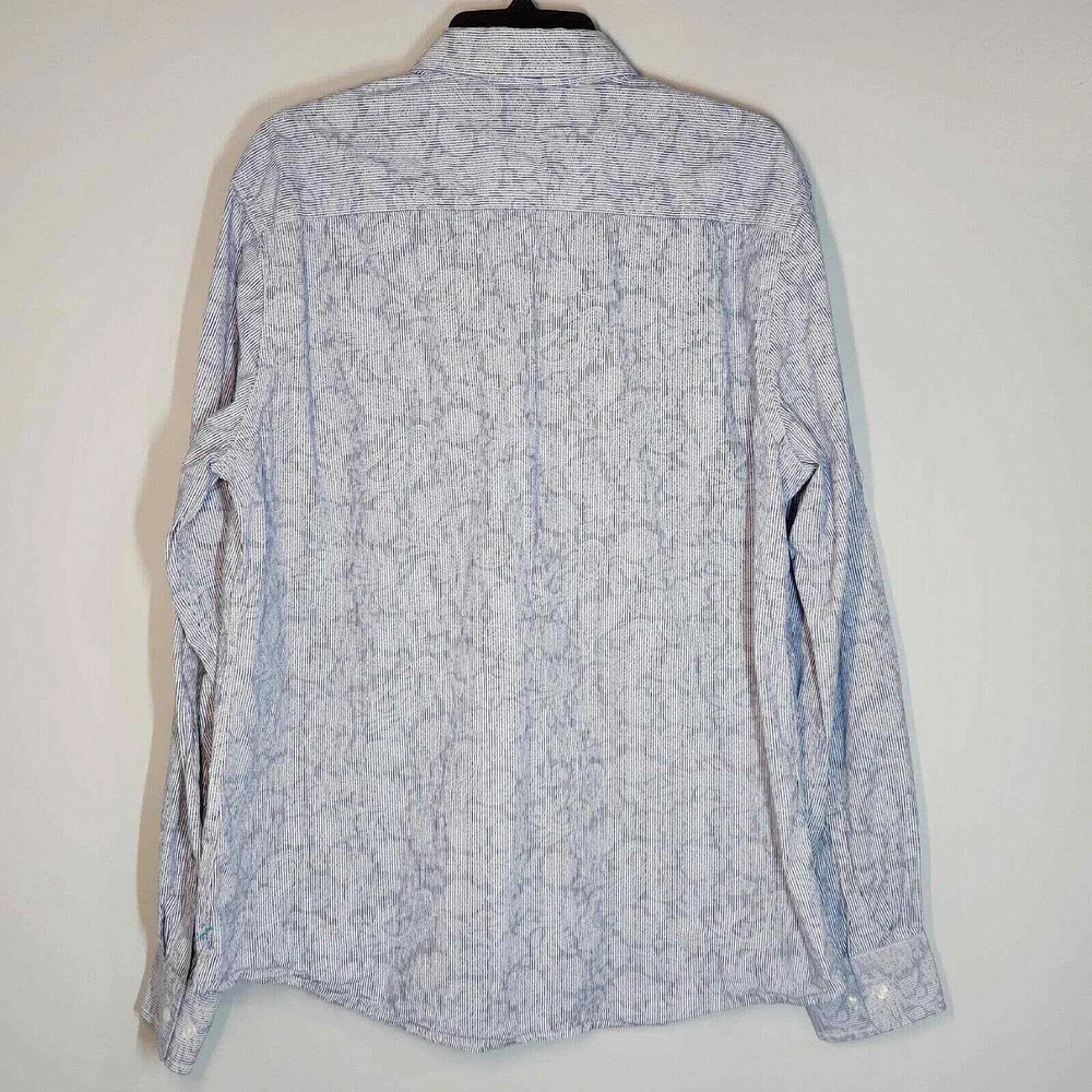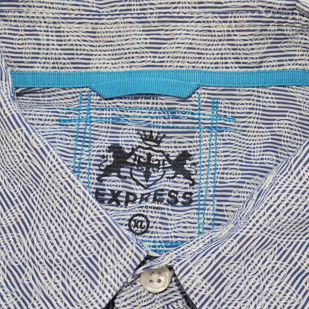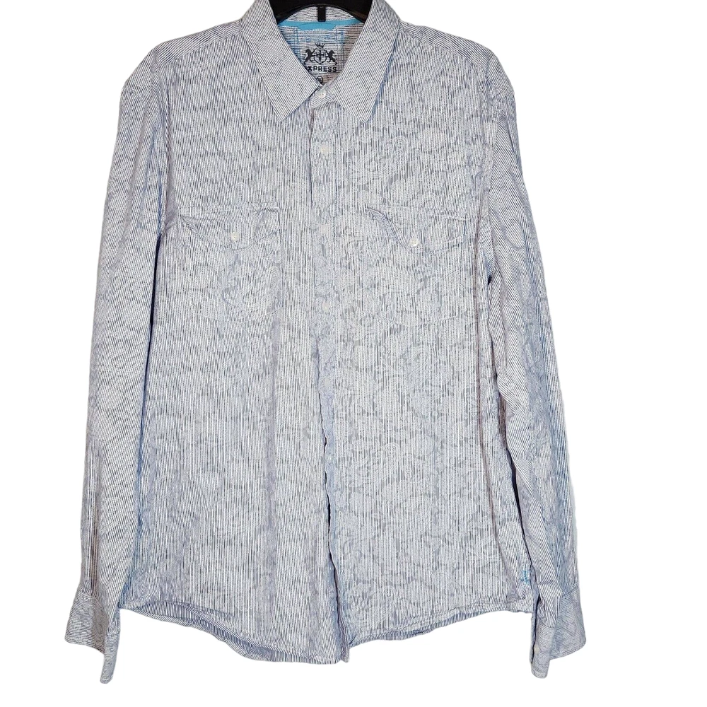 Express 100% Cotton Blue/White Stripe/Floral Long Sleeve Button Down Size: Men's XL Measurements: Width (Armpit to Armpit) 25" Shoulders (seam to seam) 20" Length (collar seam to hem) 30" Please keep in mind the colors may vary slightly from the light and photograph. If you have questions please ask! Thanks and have fun shopping!! In GOD we trust!!