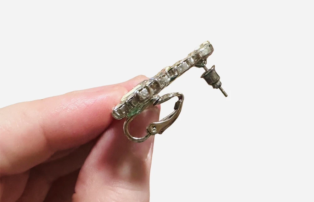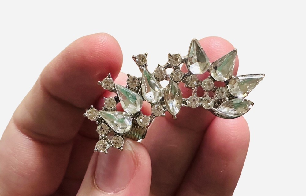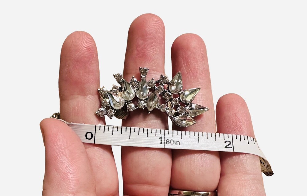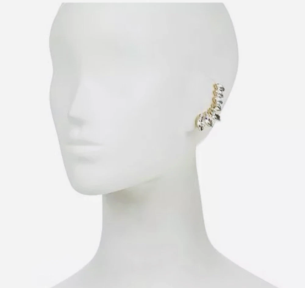 Pre-owned/Worn only once/gently worn - Express Rhinestone Crystal Cuff Clip Earring - One piece only - Fashion Jewelry. Gorgeous for a wedding or formal event. Please review photos for approximate measurements (may not be 100% exact). Mannequin photo is just to show how it is worn - however it is NOT this piece of jewelry, it is there as a reference only.