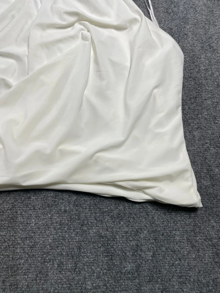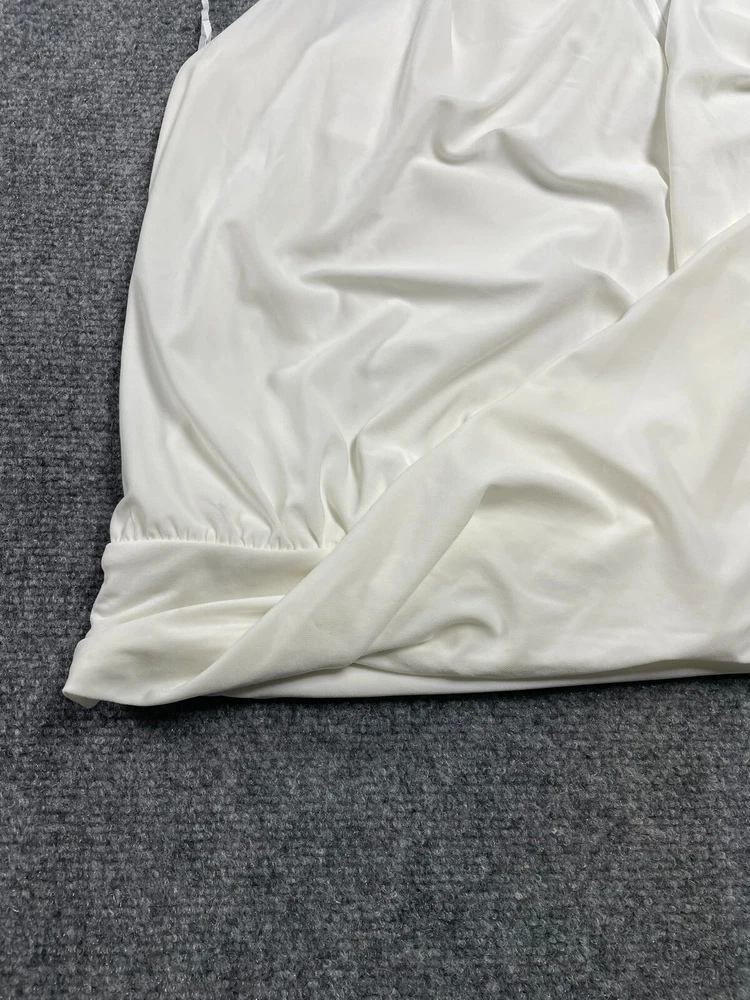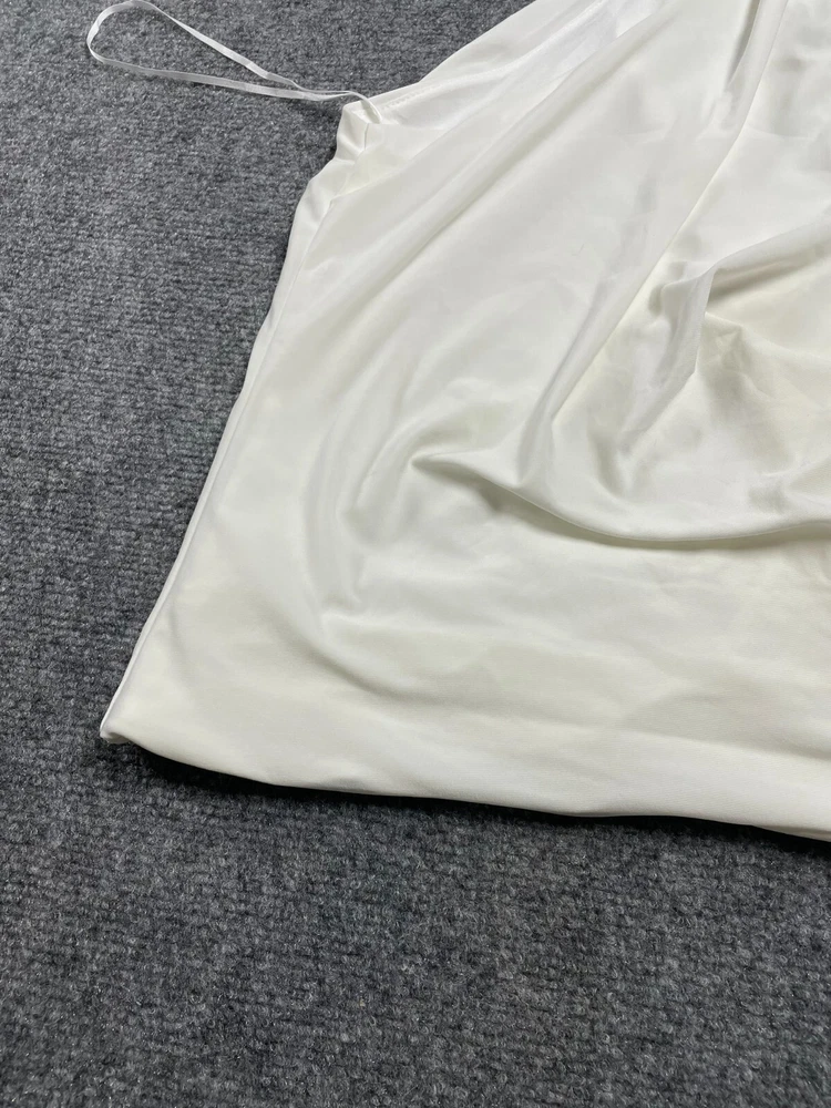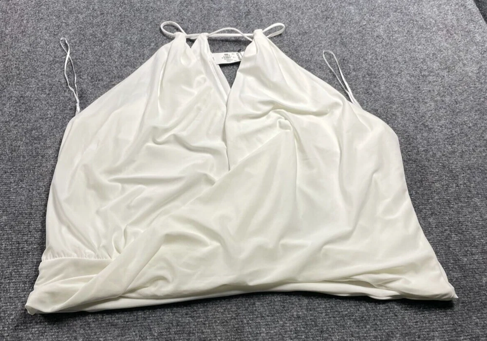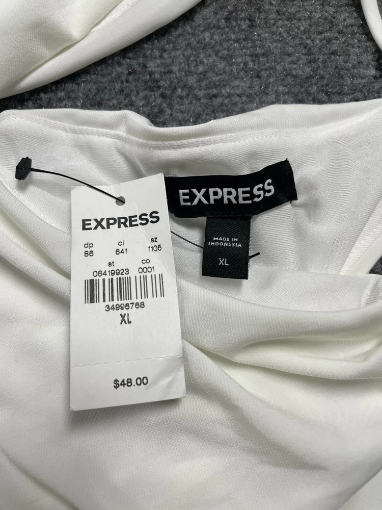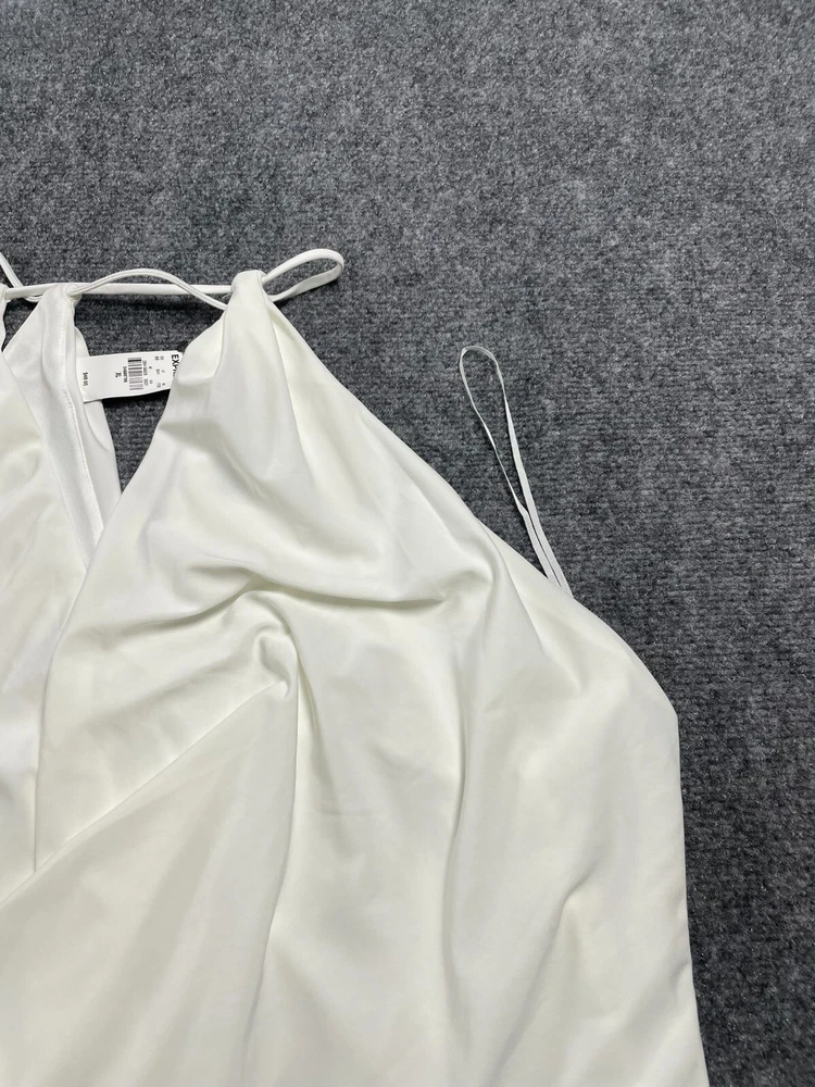 Elevate your wardrobe with this Express women's halter blouse top in a stunning white color. This soft and comfortable top features a V-neckline and pullover closure, with a sleeveless design that makes it perfect for summer, fall, or spring. The lightweight and stretchy fabric makes it easy to move in, while the satin finish adds a touch of elegance. Ideal for travel, party/cocktail, or casual occasions, this top is made of a blend of polyester and spandex, making it easy to care for with machine washable instructions. The XL size and regular fit make it suitable for any body type, while the 80s and 90s theme adds a touch of nostalgia. This blouse is a basic yet stylish addition to any wardrobe, perfect for any fashion-conscious woman.