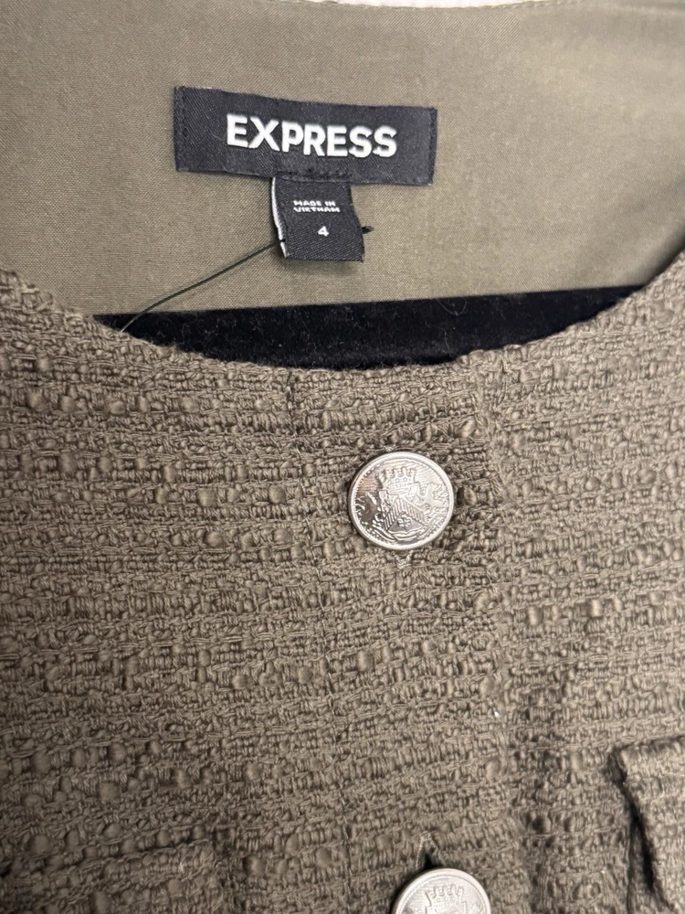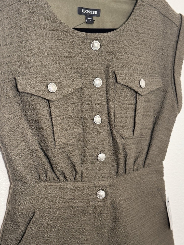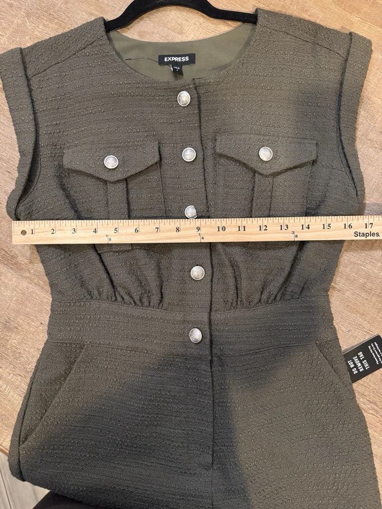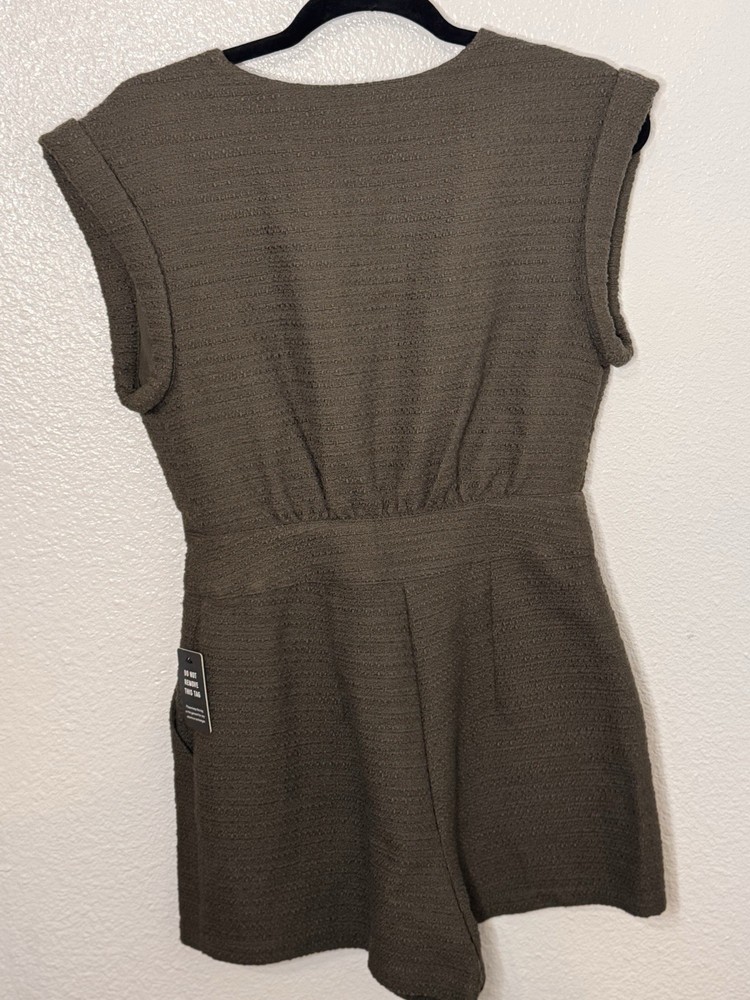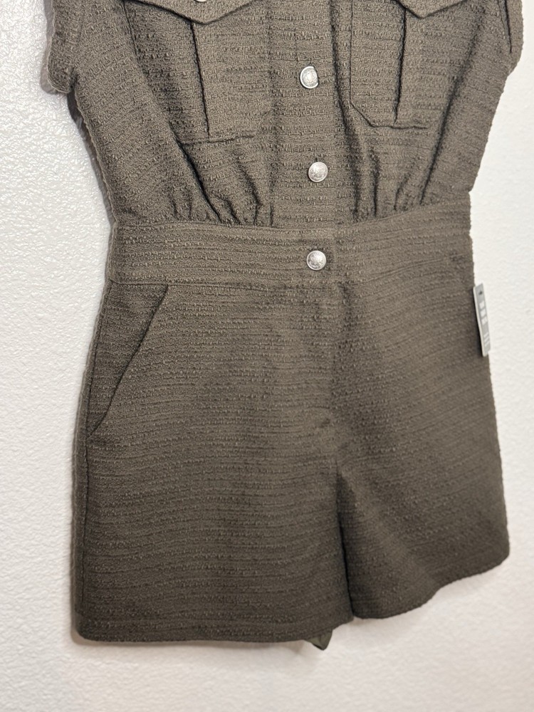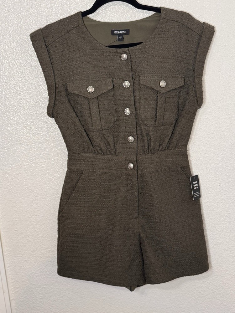 Express Women's Olive Romper Sleeveless Button Front Pockets Size 4