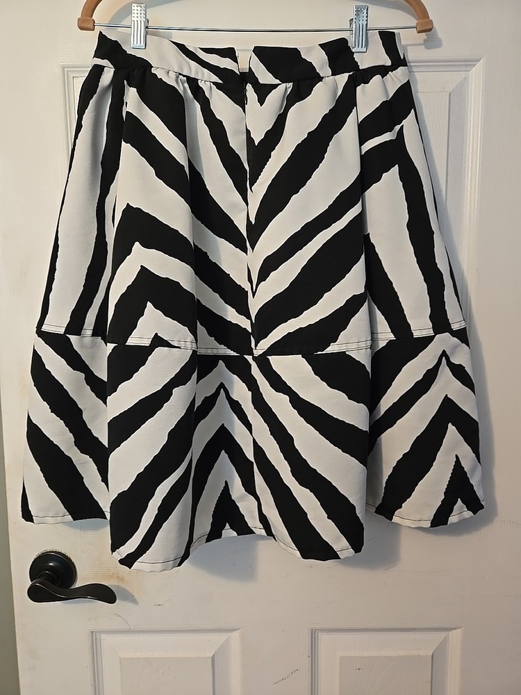Handmade: No Season: Spring, Summer, Fall Vintage: No Type: Skirt Style: A-Line Features: Lined Material: Polyester Closure: Zip Skirt Length: Short Size: 10 Occasion: Casual, Business Brand: Express Accents: Zipper Color: Black Garment Care: Machine Washable Department: Women Size Type: Regular Personalize: No Pattern: zebra