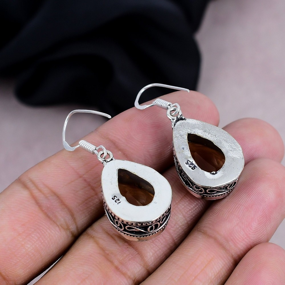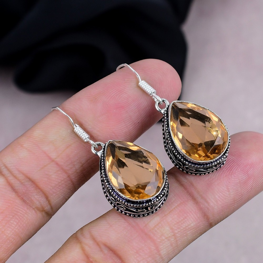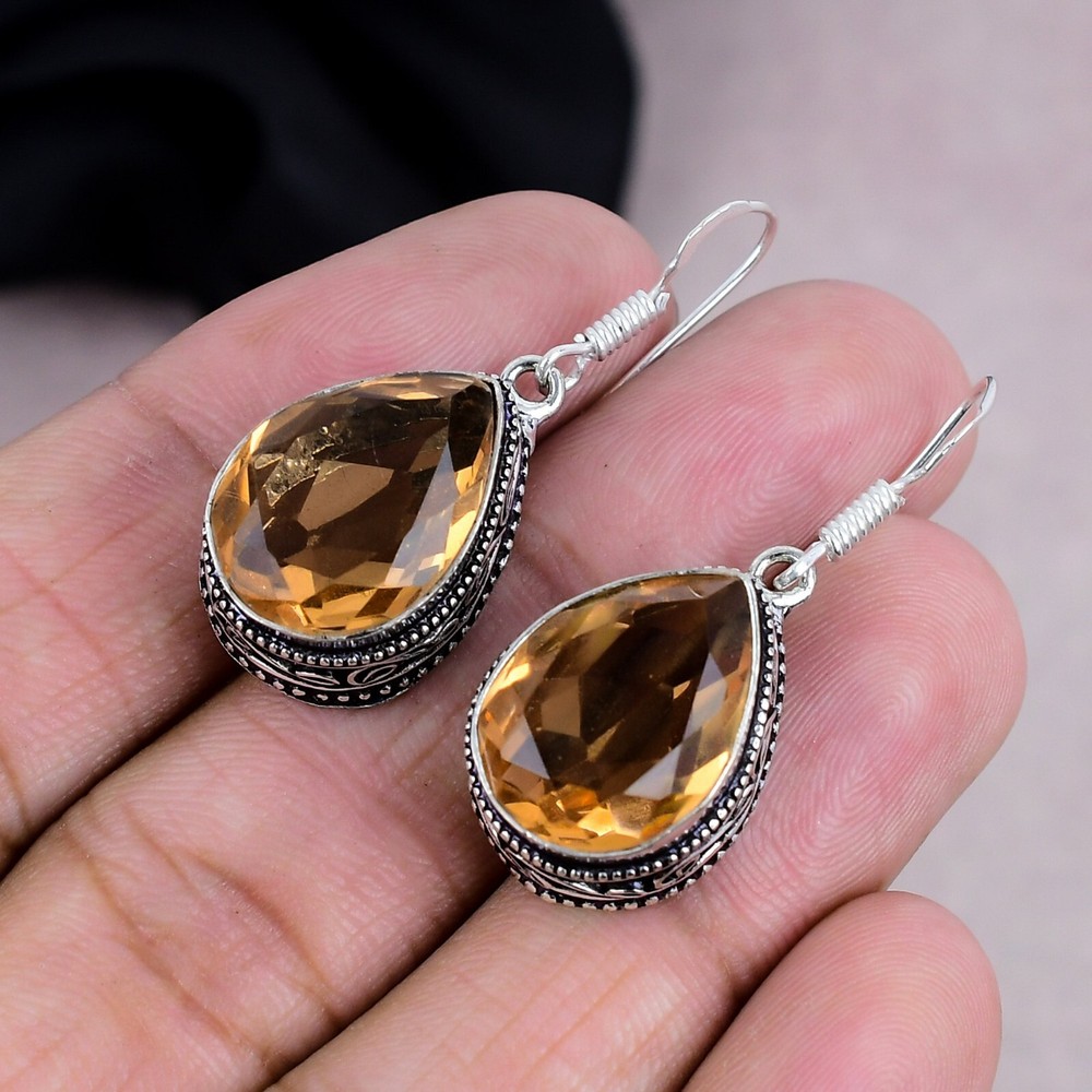 HomeExquisite Citrine Gemstone Dangle Earrings in Handmade Sterling Silver Jewelry