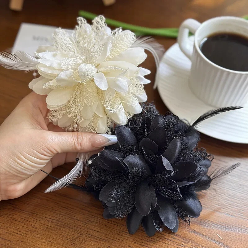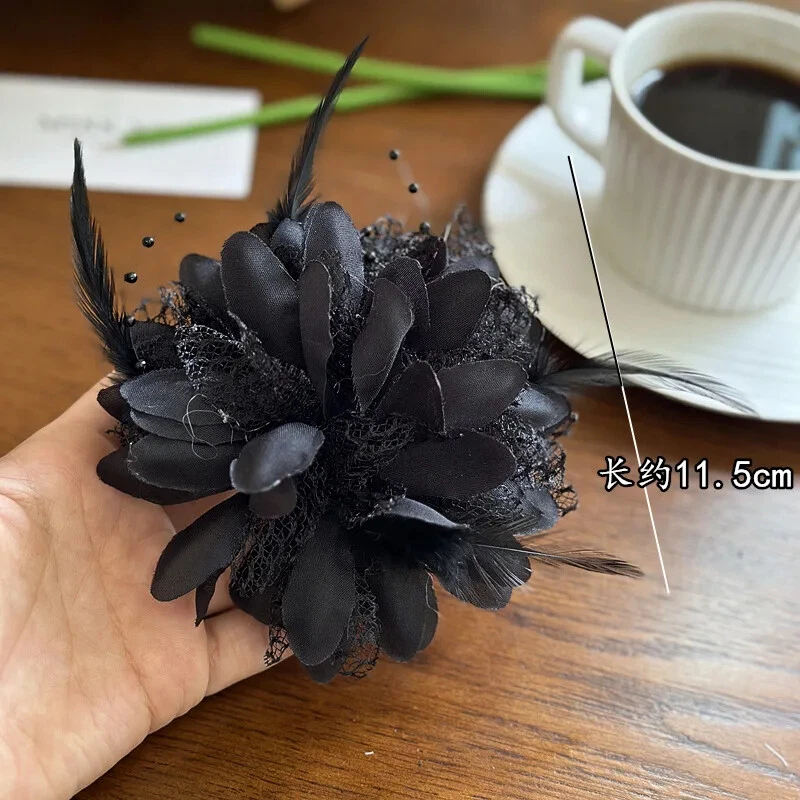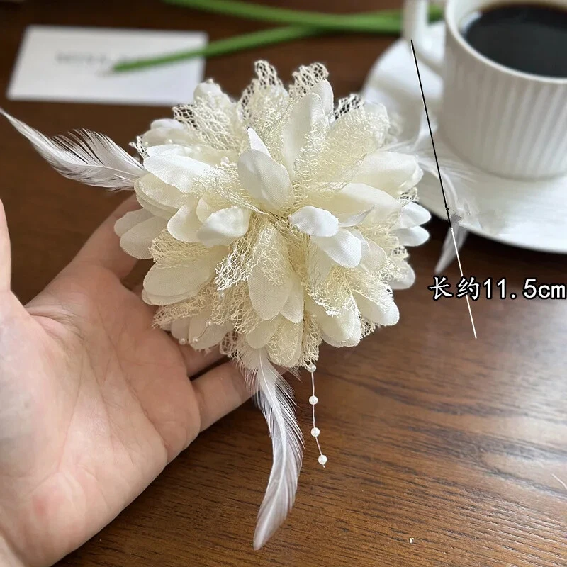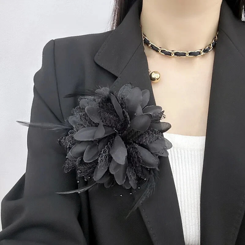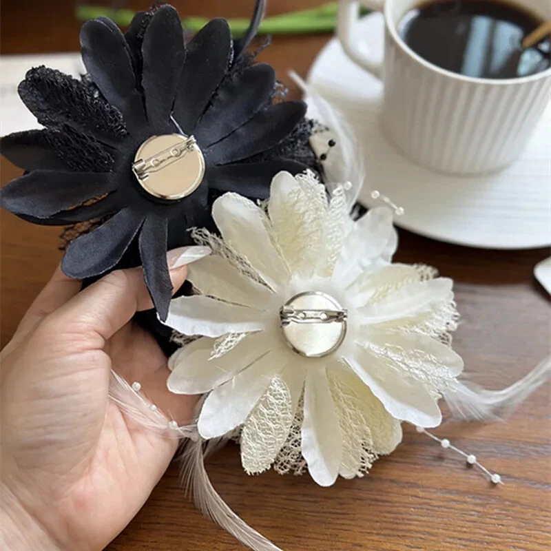 Exquisite French Mesh Feather Corsage Pin Banquet Brooch Jewelry Accessories