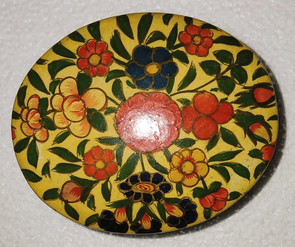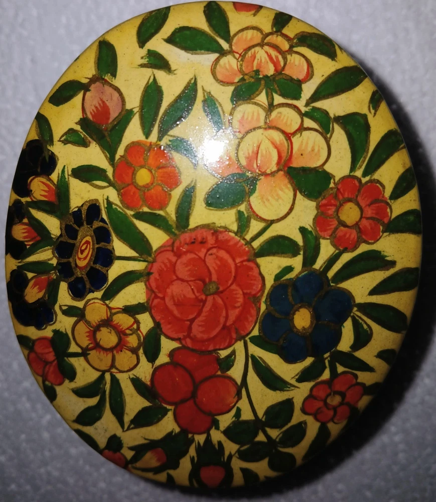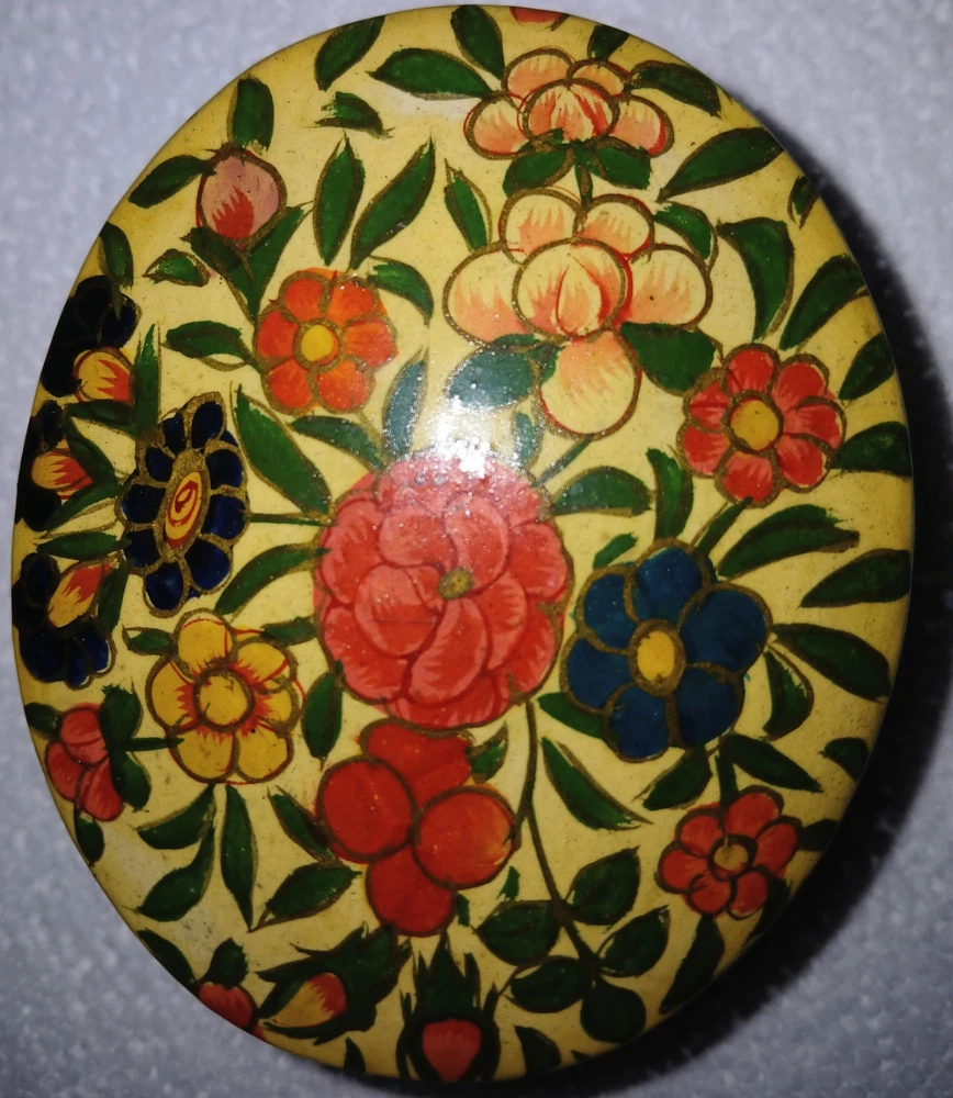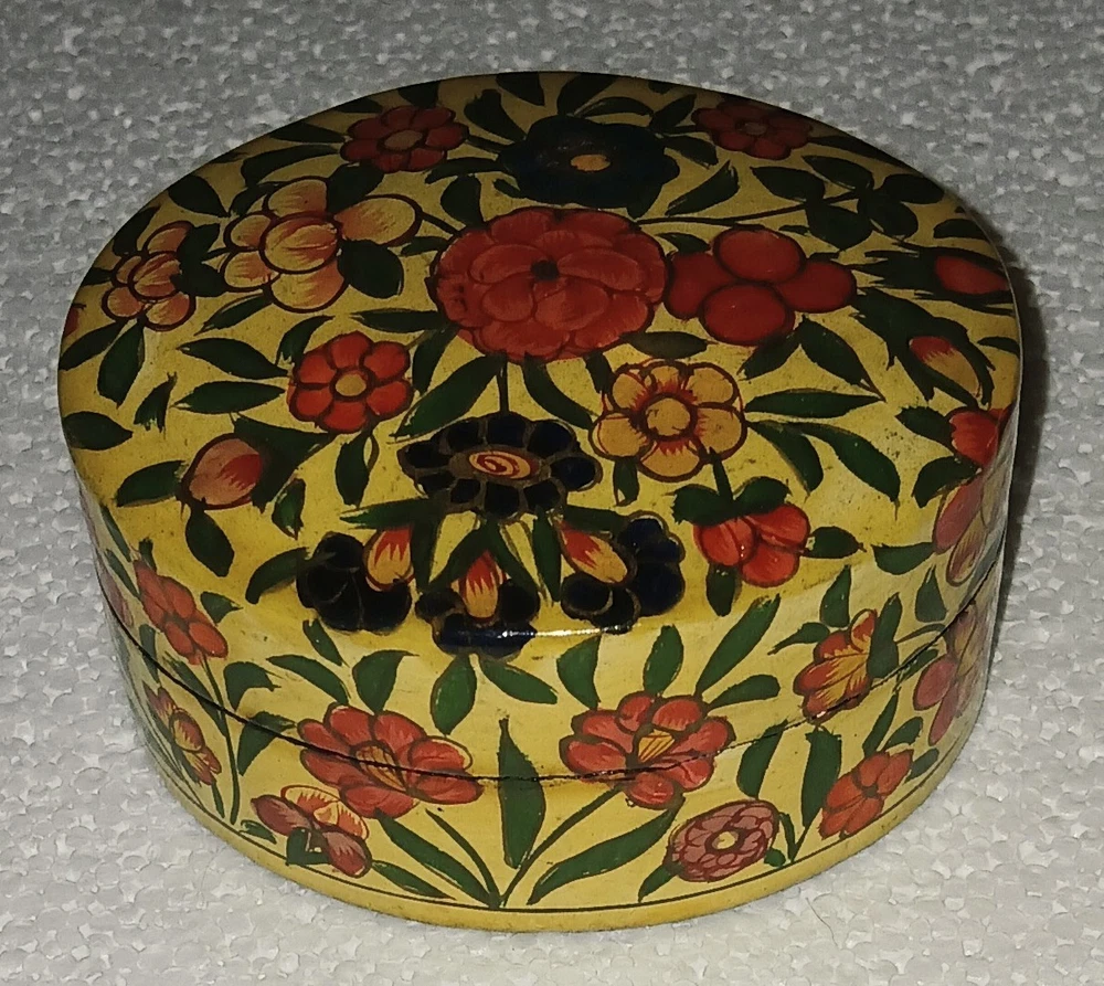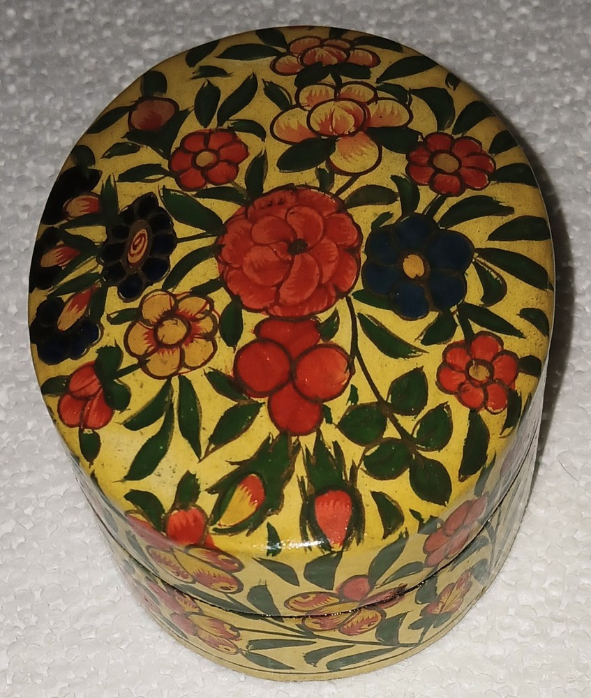 Exquisite Hand-Painted Kashmir Paper Mache Lacquered Vintage Trinket Box