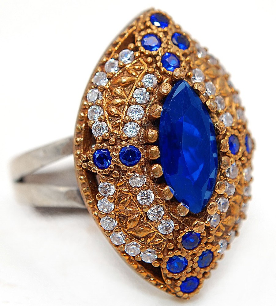 Exquisite Ottoman Empire Style 4CT Treated Sapphire 925 Sterling Silver Ring Size 9 H3-7 for Timeless Elegance
