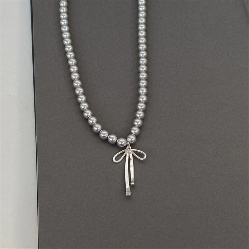 Exquisite Pearls Bowknot Necklace Neckchain Charm for Women s Jewelry Collection