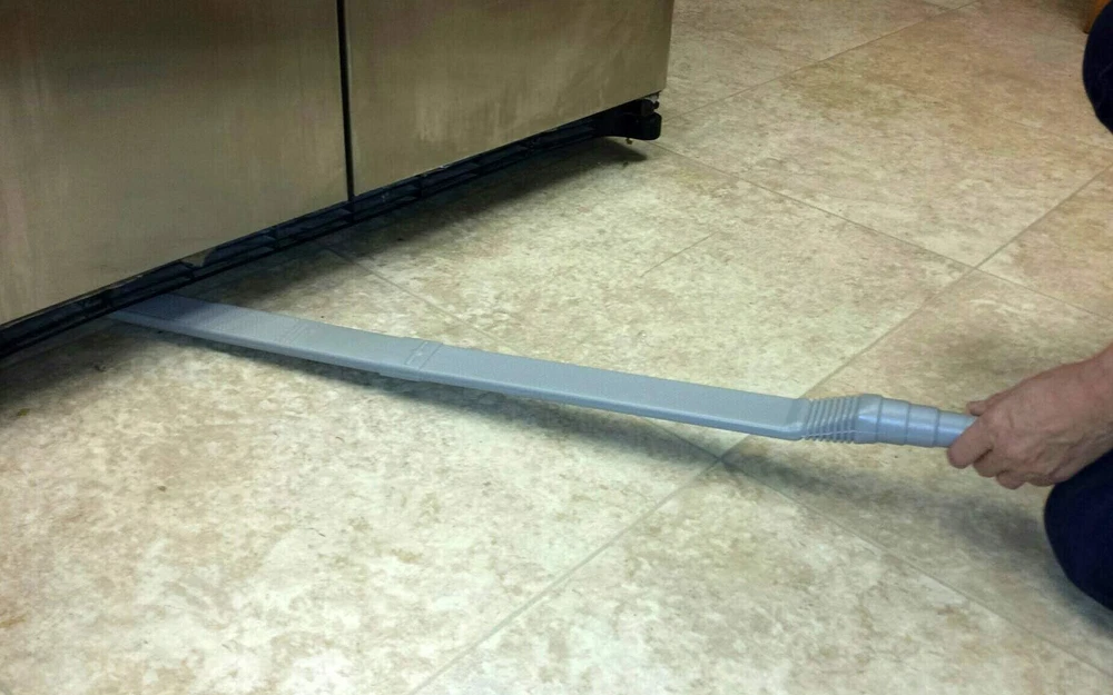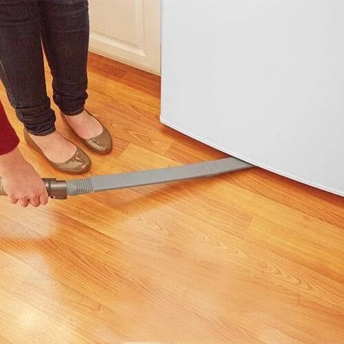 DEEP CLEANS HARD-TO-REACH AREAS: Ever wonder what's living and hiding under your fridge or furniture? Dust bunnies, crumbs & pet hair -- oh my! Let the long arm of Exten Vac get rid of those hidden messes! The flat hose design allows easy access to those hard-to-reach places like under kitchen appliances or heavy furniture. Picks up crumbs between couch cushions or on stairs. With duel directional suction from the end and underneath, it sucks up the stuff in front and underneath it. ESSENTIAL TOOL IN HOME CLEANING: Exten Vac Flat Vacuum Cleaner Attachment Hose Extender is a flat vacuum attachment that reaches areas like under the fridge, stove, vents, ducts, lint traps, corners to remove dust and dirt. It has a suction on the end AND the bottom of the attachment to capture anything that is in-front or under its path. An easy to use must have tool in home cleaning! WIDE RANGE & COMPATABILITY: Long, flexible, and sturdy the Exten Vac is perfect tool for any big or small cleaning projects. It adjusts to fit most vacuum cleaner hoses with an inner diameter of 1”, 1.2”, 1.3”, 1.4”, and provides up to a 36” reach. That's three extra feet of cleaning power! Get ready for your Fall and Spring cleaning with this handy and helpful Vacuum Cleaner Wand! DUAL DIRECTION SUCTION & EASY TO USE: The Extendable Under-Appliance and Furniture Vacuum Cleaner Attachment consists of two sturdy pieces of plastic that easily snap together and suction openings on the end and bottom to grab all the dust bunnies. To attach the Exten Vac, just slide the graduating end of the Exten Vac into the end of your vacuum hose until it stops. MATERIAL & DIMENSIONS: Made of tough high-quality plastic, Exten Vac is durable, safe, easy to clean and install. It is stiff enough that it does not collapse under vacuum but also flexes easily in any direction. DIMENSIONS: 21" x 3" x 2"; Weight: 4.8 OZ.