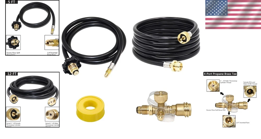 Extend A Stay RV Propane Kit - 4-Port Brass Tee Adapter with 12FT & 5FT Hoses ‹ › ‹ › ‹ › ‹ › ‹ › ‹ › ‹ › ‹ › ‹ › Extend A Stay RV Propane Kit Enhance your outdoor adventures with our premium 4-Port Brass Tee Adapter Kit , designed for convenience and versatility. This all-inclusive propane kit comes complete with essential components to make your RV experience seamless. What's Included: 4-Port Brass Tee Adapter: Connects inline between your supply and regulator. 12FT Additional Appliance Hose: For connecting your extra propane appliance. 5FT Auxiliary Tank Hose: Facilitates attachment of an extra propane tank. Threaded Sealing Tape: Ensures a secure and leak-proof connection. Key Features: Constructed from high-quality brass for durability and longevity. Excess flow protection to prevent gas leakage in case of a broken line. All connections feature 1/4" female threads for compatibility. Soft nose POL fitting offers added safety and ease of use. 1"-20 Male Throwaway Cylinder Thread and 1/4" Inverted Flare for versatile connections. Benefits: Transform your onboard propane tank into a multi-functional source for various appliances. Perfect for camping, tailgating, outdoor cooking, and heating needs. No additional tools necessary for installation—simply attach and enjoy! Reliable and strong construction ensures safe usage across various settings. Why Choose Our Extend A Stay RV Propane Kit? Experience the freedom to enjoy your outdoor lifestyle without limitations. Whether you’re grilling at a campsite or heating your RV, our Extend A Stay RV Propane Kit makes it simple and safe to connect additional propane appliances and tanks. With robust hoses and reliable fittings, you can count on our kit to elevate your adventures. Let every outdoor experience be extraordinary—order your Extend A Stay RV Propane Kit today and unleash your RV's full potential! Customer Support Your satisfaction is our priority. If you have any questions or need assistance, our dedicated 24-hour online service team is always here to help. We are committed to providing you with an exceptional shopping experience. Shipping Free & Fast Shipping - We offer free shipping to most of the USA with a normal delivery time of 3-7 days. However, due to the current situation, additional delivery time (up to 3 weeks) may be required for some items. Alternative Carriers - We may use alternative carriers (e.g. USPS, FedEx, UPS, etc.) to ensure your package arrives safely and on time. Due to the use of multiple carriers, we are unable to provide a tracking number automatically. Handling Time - Orders are processed and shipped within 1-2 business days of receiving cleared payment. Shipping Restrictions - Shipping to Alaska, Hawaii, Puerto Rico, Guam, and other US territories may incur shipping charges or delivery restrictions. Please contact us before ordering, or your order can be refunded/cancelled. State Restrictions - There may be restrictions based on your state of purchase. For example, certain items may not be shipped to California due to state regulations. Contact for Tracking Updates - If you require tracking updates or have any concerns about the delivery of your order, please feel free to contact us, and we will be happy to assist you. Return 30-Day Hassle-Free Returns - We want you to be completely satisfied with your purchase. If you are not, you can return the item within 30 days of receiving it for a full refund or exchange. Easy Return Process - To start a return, simply contact us and we will provide you with a prepaid return shipping label and detailed instructions. Restocking Fee - There are no restocking fees for returns. However, the buyer is responsible for return shipping costs if the return is not due to a seller's error. Refund Processing Time - Refunds will be processed within 5 business days of receiving the returned item in its original condition. Payment We accept all major credit cards, PayPal, and Apple Pay for your convenience. Your payment information is secure and encrypted to ensure a safe and seamless transaction. Please complete your payment within 3 days of purchase to avoid any delays in shipping. Feedback Your feedback is extremely important to us. We strive to provide the best products and customer service possible. If you are satisfied with your purchase, please take a moment to leave us a positive review. If you have any concerns or issues with your order, please contact us before leaving negative feedback. We are committed to resolving any problems and ensuring your satisfaction. Contact Us If you have any questions or concerns, please feel free to reach out to our customer support team. You can contact us through the eBay messaging system. We are available Monday to Friday, 9:00 am to 5:00 pm EST, and we will do our best to respond to your inquiry within 24 hours. Buy it now and enjoy a pleasant shopping experience! Manufacturer Part Number: RV Propane Kit UPC: Not Set MPN: Not Set Unit Quantity: 3.3 Brand: Unbranded Part Type: Accessories Country/Region of Manufacture: Not Set Warranty: 1 Year Unit Type: lb