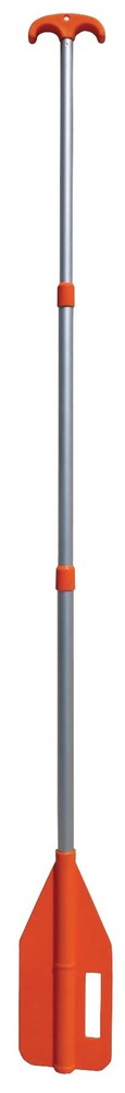 Adjust easily to variable lengths with a simple twist Aluminum shaft disappears inside the blade to allow for compact storage under boat seats or in PWC storage compartments Corrosion-resistant aluminum shaft, high-impact molded blade and boat hook handle, and hassle-free locking device Bright orange blade is great for signaling in emergencies 25.5 - 72 inches, for higher profile boats