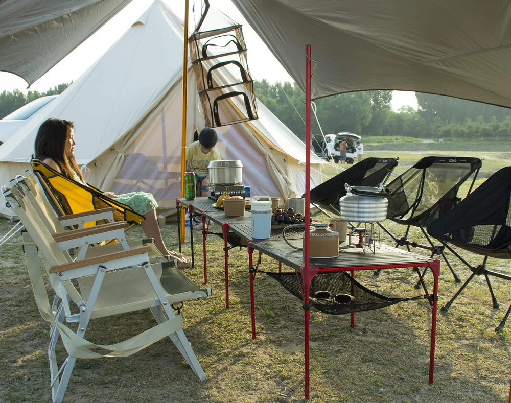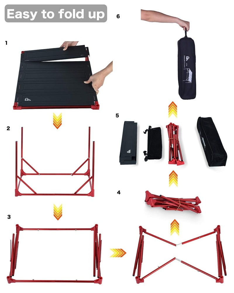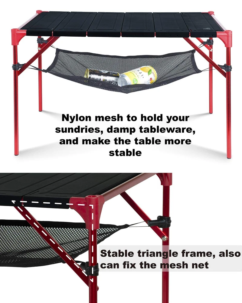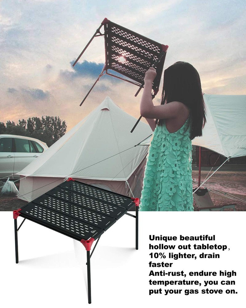 This connecting table is great for many people dinner parties, camping, BBQ, picnic. - Unique connecting design - Lightweight and sturdy - Waterproof, corrosion-resistant, easy to clean - Compact - Stable - Easy to set up and pack - Ripstop carry bag included Unique extendable design, 2 tables and 1 pack connecting plates make 3 tables, 3 tables and 2 packs make 5 tables, and so on; And, you can stack one table on the other without collapse; Also, buckling the connecting plates on the legs can make this table more stable. Great for many people dinner parties, camping, BBQ, picnic, sporting events, backpacking, RV travelling, beach trips, backyard, fishing, motorcycling and other outdoor activities. LARGE TABLETOP yet ULTRALIGHT and PACKED SMALL, unique folding design makes this table have much more tabletop area than others when setup and smaller when packed at the same time. Tabletop area 16.54 × 16.54 inches; Height 15 inches; The tabletop slats lock on the frames after you put them on. Ultralight and compact, made of high quality aluminum alloy 6061, Max Load 66 lbs, packed size 17 × 4.33 × 4.33 inches; Hollow out tabletop to reduce weight and won’t hold water. Heat resistant, can put your stove on; Waterproof, corrosion resistant, easy to clean; Ripstop carry bag included, easy to carry everywhere; Easy to set up and pack, all the components are detachable; Nylon mesh to hold your sundries, damp tableware; Stable triangular structure Lifetime warranty: We stand behind our products and offer a limited lifetime warranty against manufacturer defects.