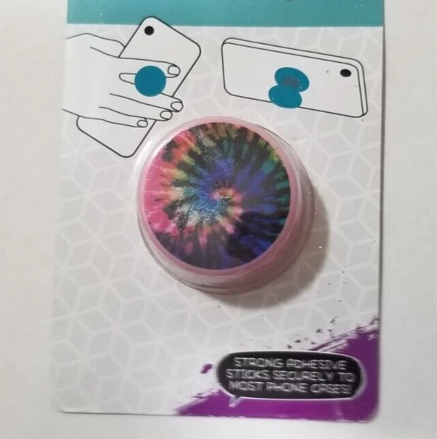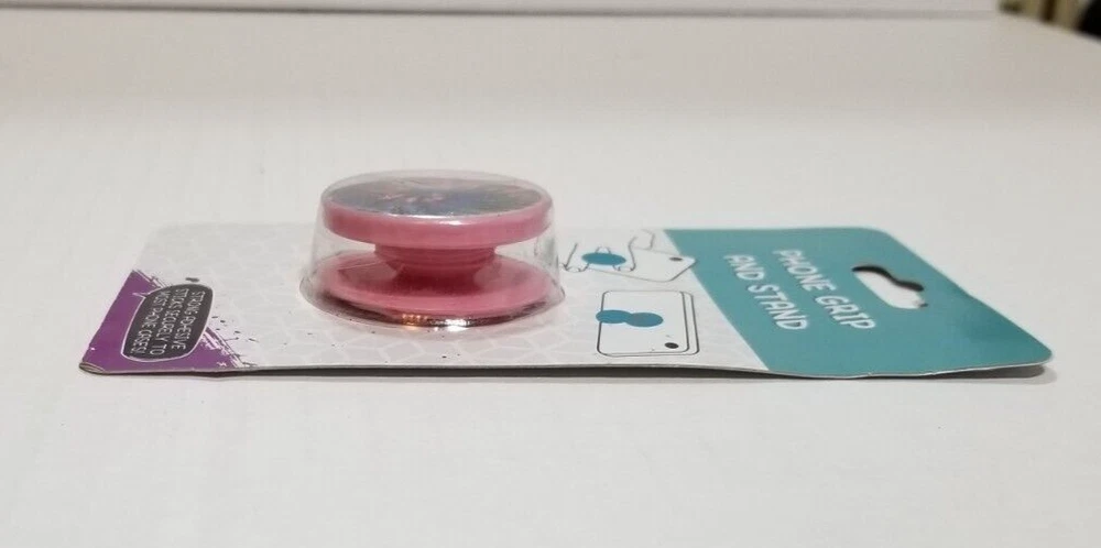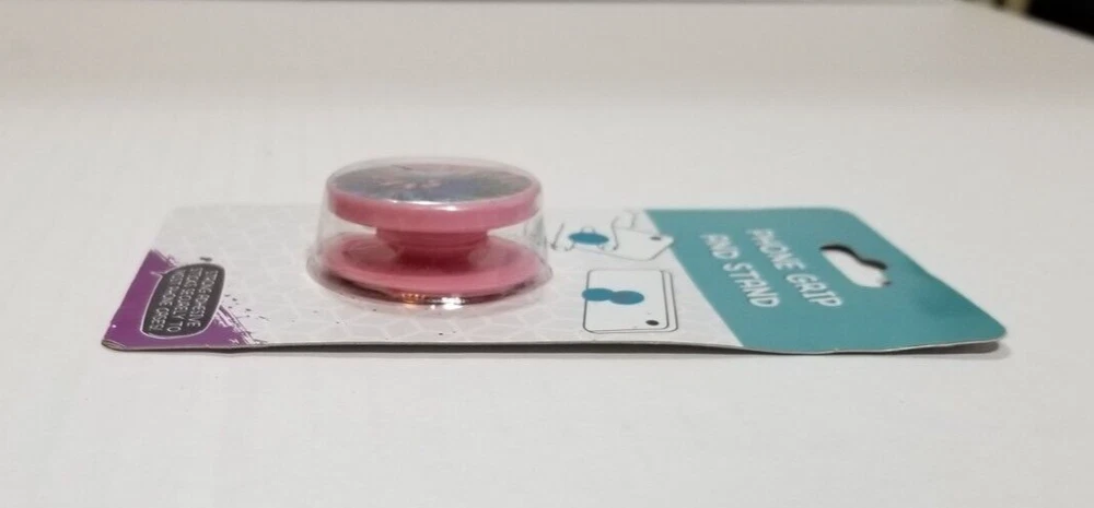 A plastic phone grip and stand in pink with a burst of multi colors on the top piece. It is extendable and flexible to allow you to hold your phone between your fingers or stand it up. In the photos, the blue grip is shown only to demonstrate the expandability and flexibility of the piece. Attaches to the phone with a strong adhesive backing, which will stick to most phones. Measures approximately 1 1/4" (3.17 cm) in diameter and 1/2" (1.27 cm) - 3/4" (1.90 cm) tall. Brand new in unopened package. Please feel free to contact me if you have any questions. Buyer to pay all shipping charges; just check the shipping calculator for your options. Thanks for looking!