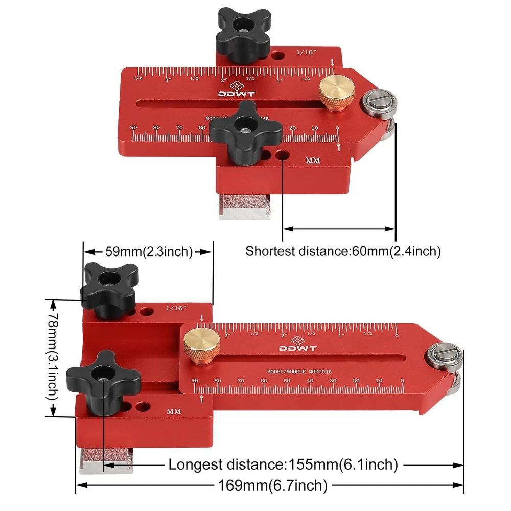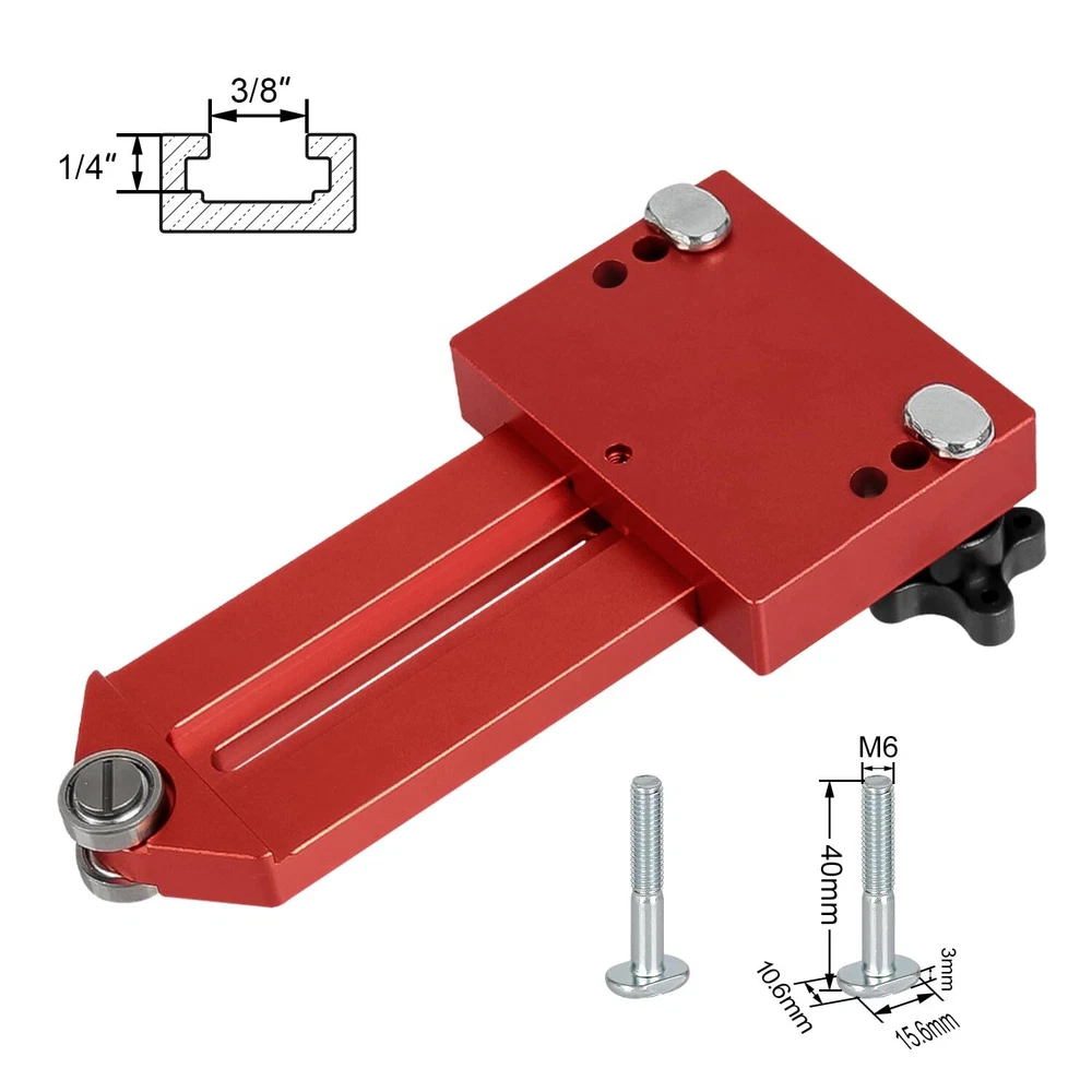 Using the thin rip guide is very easy. Jut slide the guide into the T-track slot of your table saw and lock it a few inches in front of the saw blade. Set the dimension you want on the laser-engraved scale, lock your fence so your stock is just touching the bearings and make the cut. Repeat as needed with each strip the same size as the first. Calibrating the scale to your saw couldn't be simpler.Just extend the bearings until they touch the tooth of the saw blade and adjust the scale indrcator to the nearest mark. Now you can set the dimension of your strips without having to compensate for the thickness of you saw blade.Scales for both millimeter and inch are laser engraved on the anodized aluminum body to the same tolerance. Specification: Material: Aluminum alloy Adjustable range: 59-146mm Application: For 3/4 x 3/8 inch standard miter slots (19x9.5mm T-Slot) and #30mm T-Slot Track Package Included: 1 x Thin Rip Tablesaw Jig 2 x T-slot Bolts Upgrade lengthen size meets different machine needs,except Dewalt saw The thin rip guide is machined from a solid piece of aluminum alloy,anodized surface,metal rigid structure,strong and stable,long service life Sliding tenon design,adjustable inward and outward,locks down solid without swaying from side to side,this would help avoid the rips drift,specifically designed for precision cutting The thin rip jig has 2 guide bearing on the tip play the role of driving the stock forward,to make feeding your stock through an easy and smooth moving process Equipped with sliders and T-bolts, fit 3/8 x 3/4 inch T-slot and 1/4 x 3/8 inch T-slot track, can work with most table saw, router table and band saw