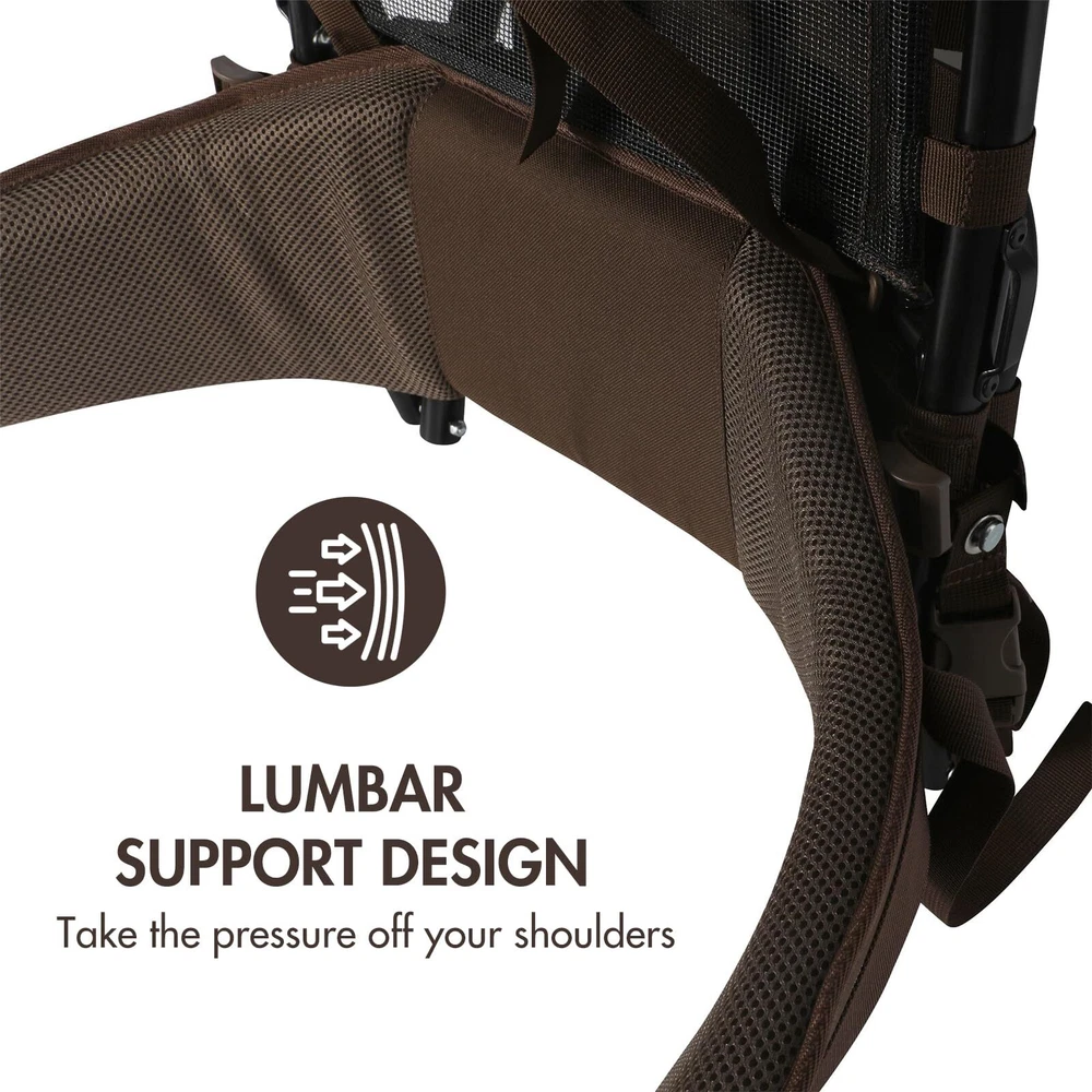 Lasting and Reliable: Crafted with a premium aluminum frame, the external frame backpack ensures long-lasting durability and reliable performance. This sturdy backpack frame provides excellent support and stability, making it perfect for hunting, hiking, and backpacking adventures Ergonomic Design:This hunting backpack features a mesh back panel that allows for enhanced breathability and ventilation during long hours of wear. The extra thick padded shoulder straps and waist belt offer optimal comfort and weight distribution, reducing fatigue and strain on your body Ample Storage Space: With dimensions of 14.96"L x 14.17"W x 29.92"H, our frame backpack provides ample space to store all your essentials for your outdoor activities. Whether you need to carry hunting gear, hiking equipment, or camping supplies, this pack frame has enough room to accommodate everything you need Versatile and Adjustable: The external frame design of our backpack allows for easy attachment and customization. You can easily attach additional pockets, or accessories to the frame, providing you with endless possibilities for organization. The adjustable shoulder straps ensure a comfortable fit for users of different heights Reliable: We stand behind the quality of our product. Your satisfaction is our top priority, and we are committed to delivering a external frame hiking backpacks that meet your needs in the great outdoors