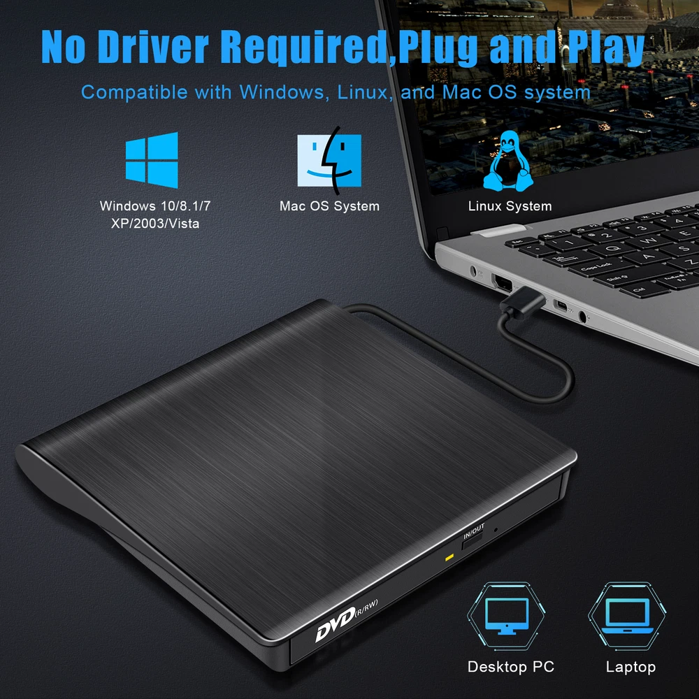 External USB 3.0 DVD RW CD ROM Writer Drive Burner Reader Player For Laptop PC