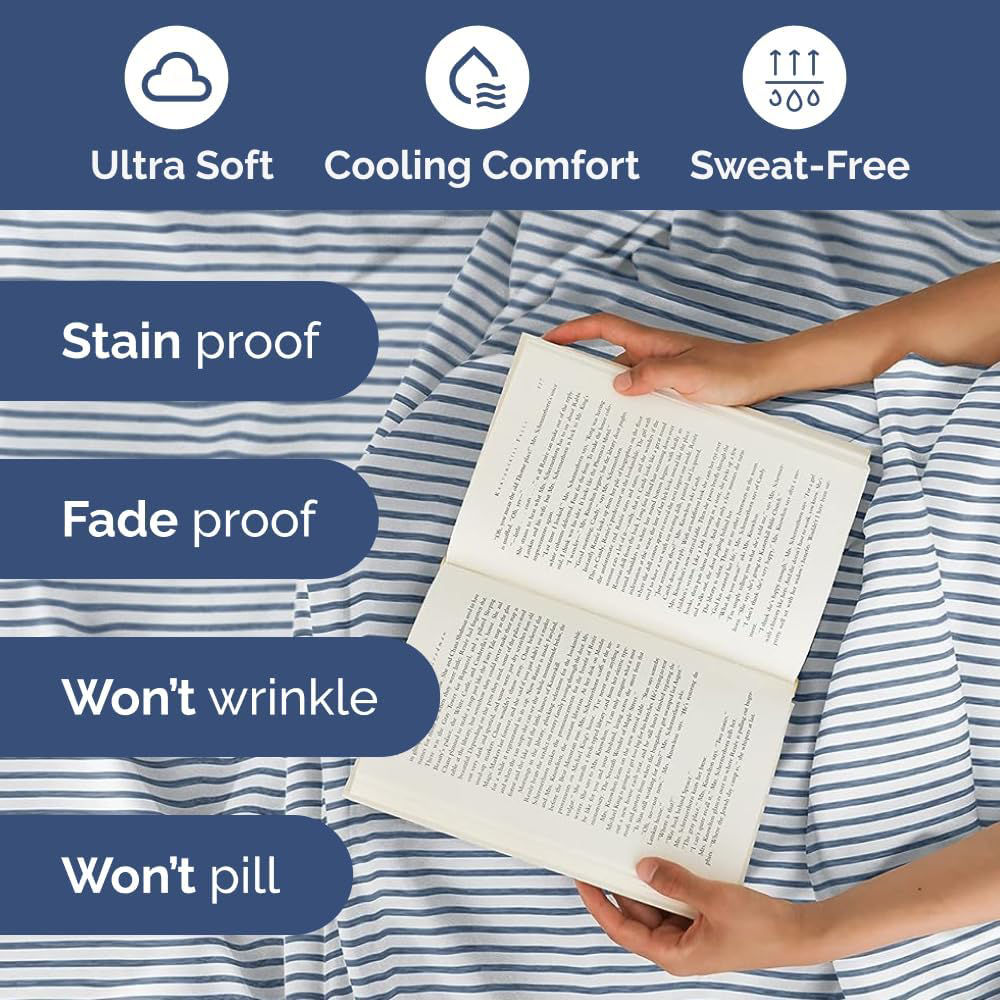 Extra Deep 6-Piece King Sheet Set Cool Soft Wrinkle-Free Blue Stripes