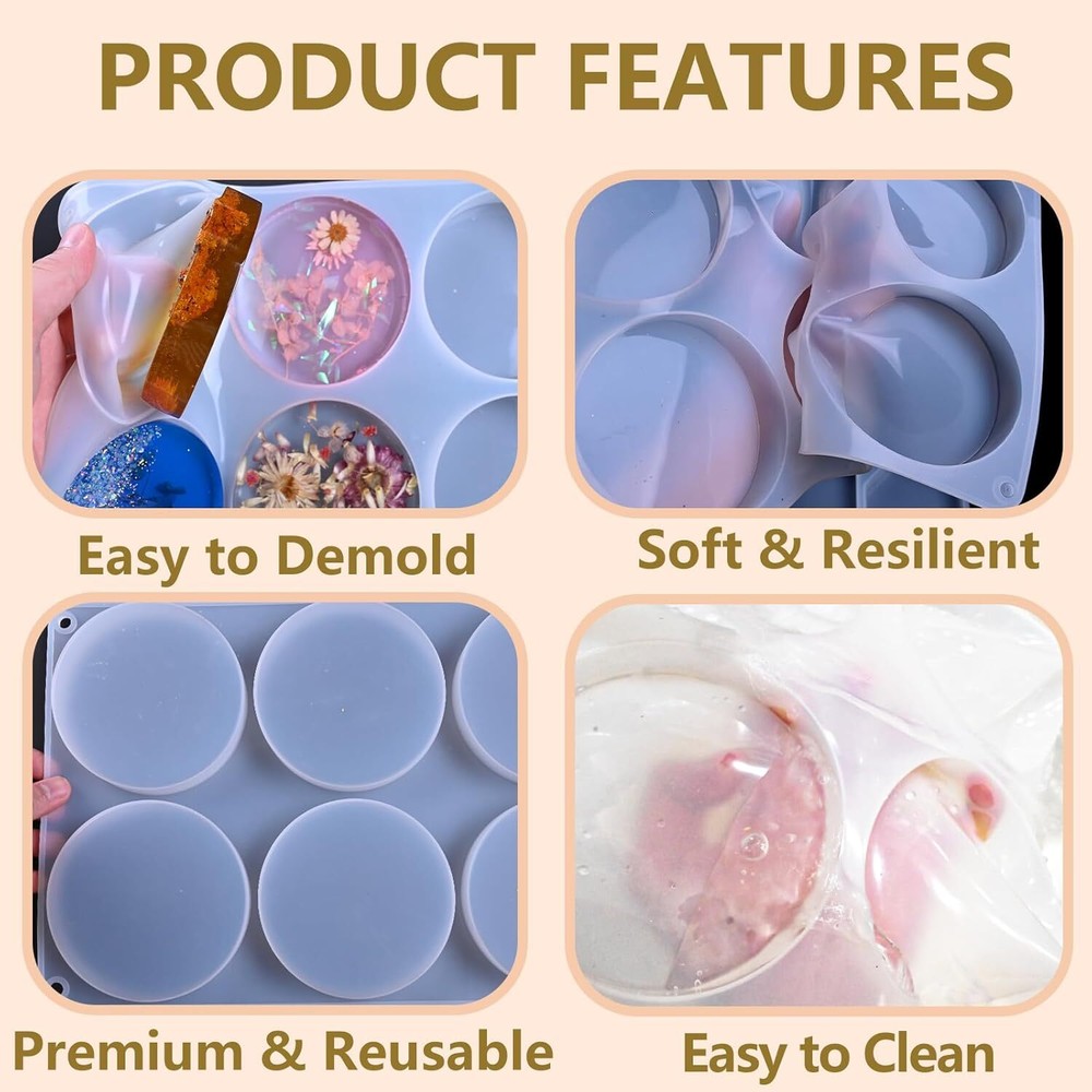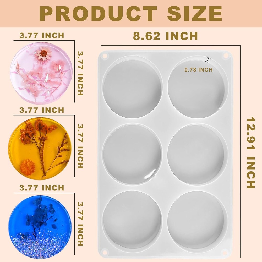 Extra Deep Resin Coaster Molds, Large 6 Cavity 6 Cavities Round Molds Product Details Material: Silicone Color: 6 Cavities Round Coaster Molds Brand: ZQYSING Item dimensions L x W x H: 12.9 x 8.5 x 0.75 inches Shape: Round Number of Pieces: 1 Manufacturer: ZQYSING-1 Product Dimensions: 12.9 x 8.5 x 0.75 inches Item Weight: 5.9 ounces Country of Origin: China Item model number: 043 【Versatility Resin Molds】: The deep round silicone molds for many projects epoxy resin coasters, wine cups mat, coffee discs, write paperweight, sculpture bases, resin candle holders, trinkets trays, flower bouquets preservation, art craft home decor display, coaster epoxy molds silicone are compatible with many casting materials, especially good for epoxy resin, casting resin, not for coating resin 【Large 6 Cavity Coaster Molds】: ZQYSING resin coasters molds have a diameter 3.8 inch with depth 0.78 inch, It's very sturdy and bigger; It's thick enough to create a small scene, DIY many resin art craft 【Premium Quality Silicone】: They are round coaster molds had a shine and not matte, coaster molds the rim it forms is a plus, the finished products have a glossy and smooth surface without polishing, easy to clean, easy to use & de-molds, reusable & durable 【Ideal Gift】: You'll like the depth of these 4 inch resin coaster molds, they allow for adding multiple layers easily. But you can do thinner ones if you don't want it to be very thick. It's a ideal gift choice to send to your friends family as Graduation seasons, Teacher gifts, Valentine's Day, Mothers' Day, Fathers' Day, Birthday gifts, Thanksgiving, Christmas and other special occasions 【After Sale Service】: Please purchase with confidence. Simply add to your cart now! If you have any questions or suggestions about ZQYSING's moulds, please contact us in time, and we will try our best to solve the problem at the very first time