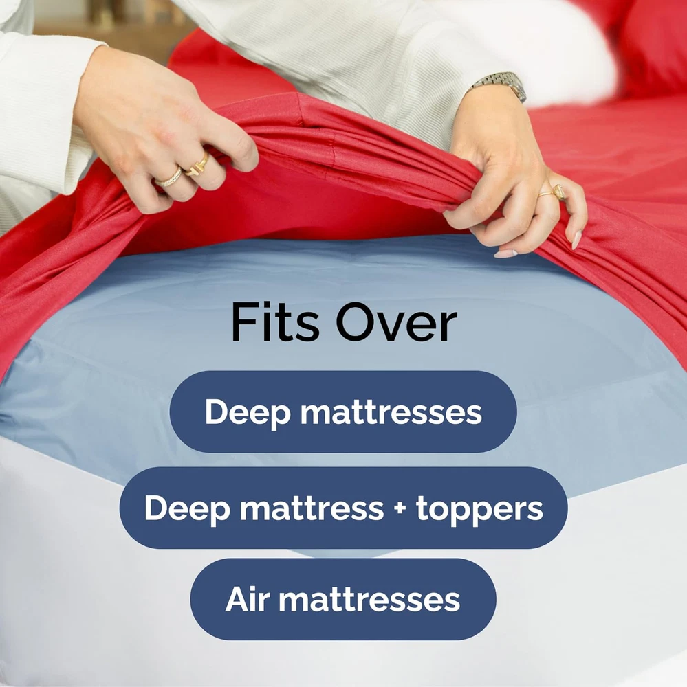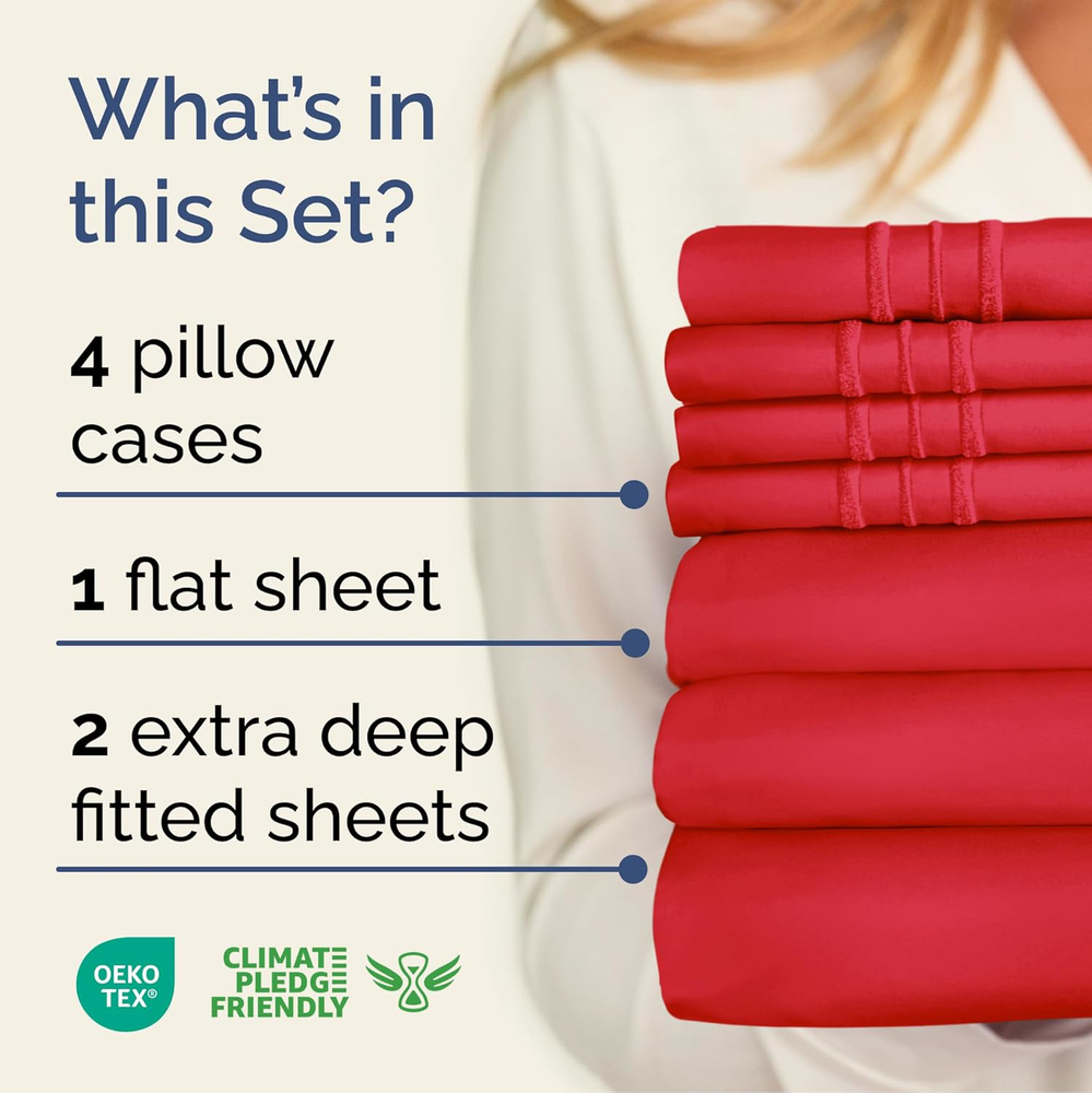 Extra Deep Split King 7-Piece Cooling Luxury Red Sheet Set