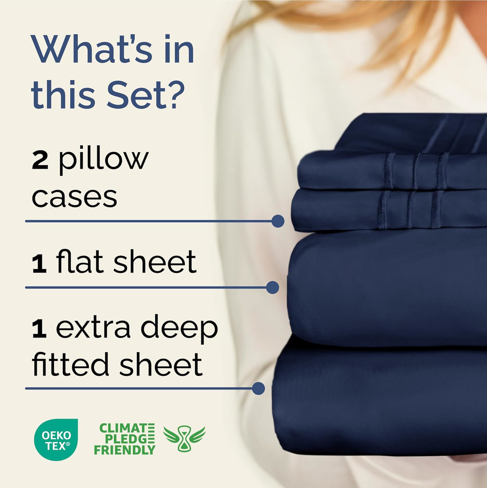 Extra Deep Twin XL Cooling Navy Blue 4-Piece Bed Sheet Set