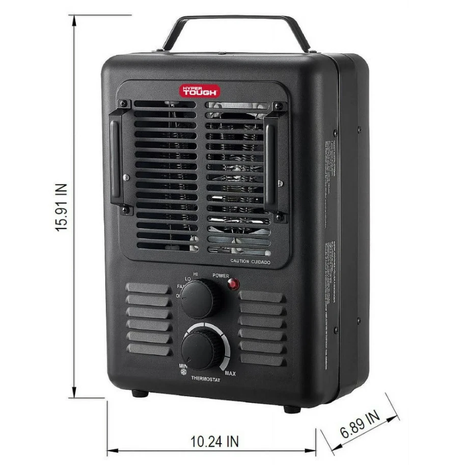 The New 1500W Milkhouse Utility Heater is the perfect investment for those seeking a reliable and efficient heating solution. This heater is capable of quickly and effectively heating areas up to 160 sq ft. Equipped with an adjustable thermostat and 2 heat settings, users have full control over the temperature to ensure maximum comfort. It is easily portable thanks to the carry handle and compact size, measuring 10.24" x 6.89" x 15.91". The durable metal construction aids in longevity. The built-in safety features such as overheat protection and tip-over switch-off function provide peace of mind when using this heater. Whether you need supplemental heating in your home, garage, or workshop, the New 1500W Milkhouse Utility Heater offers exceptional performance at an affordable price point. Metal construction for extra durability Adjustable thermostat allows for easy temperature control Air forced by a fan Large handle for easy carrying Light indicates when heater is on Product size: 10.24 in x 6.89 in x 15.91 in Heater remains cool to the touch No assembly required Protective features in place to prevent overheating 2 heat settings Equipped with a tip-over switch off function for safety Recommended for indoor use