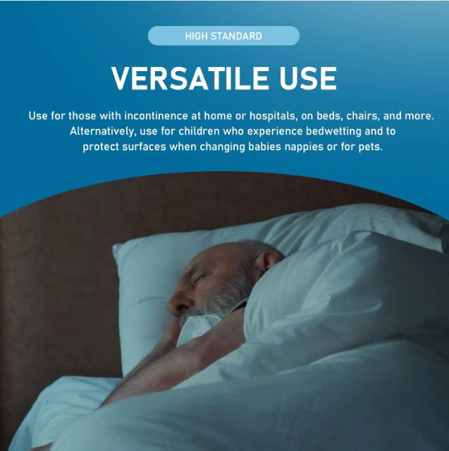 Extra Large 36 X 36 in Disposable Bed Pads Adults Incontinence Underpads US Warehouse - FREE & FAST Shipping in US Product Description: 7 Layer Design: Disposable underpads features a 7 layers design which quickly asborb and lock the liquid without leaking to protect the floor, bedding, chair and furniture Supper Absorbency: Bed pads disposable adult a super absorbent core of high polymer material. These disposable pads turn liquid into gel in seconds for easy clean up. Pee Pads for adult, XXL dog pee pads extra large Quick Drying: Fast absorbency, which absorbs liquid instantly. Rrhombus design directs liquid to be absorbed quickly to prevent overflow Leakproof and Adhesive Backing: Our disposable underpads use two wide adhesive strips on the back of the pad. Bed pad does not move randomly. No traces will be left after changing the absorbent pads Multiple Use: These multi-functional disposable pads for adults, pets and puppy cat pee pads for dogs Feedback: 1.Any question for your order, please contact us in time, we will reply to you within 24 hours and give you a satisfactory answer. 2.If you are satisfied with our products and services, hope to take up your a little precious time to leave feedback reviews for our products.Thanks! 3.Your satisfaction is our effort. Welcome to order again! Have a great day! Our Policy: 100% Satisfaction Guarantee 20% of restocking fee will be charged for return item