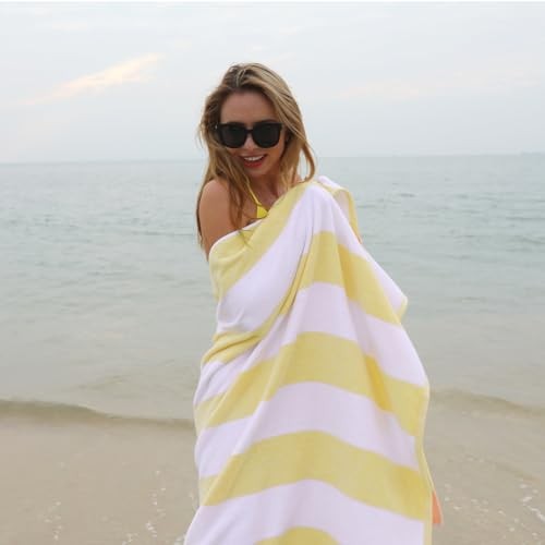 Return Policy Fast Delivery Trusted seller Plush Oversized Beach Towel - Cotton 40 x 72 Inch Large Thick Yellow Striped Cabana Pool Swimming Towel Product Description 【94% Combed Cotton 6% rayon derived from bamboo】: Plush, breathable and large, soft and healthy to skin, especially to children skin. 【Extra Large & Thick】: 40 x 72 inch, 500gsm, oversized and thicker than standard beach towels, it's not only a beach towel on the sand but also a blanket in a sofa. 【Premium Quality】: 5 star hotel quality, lightfast and long-lasting, easy to shake off the sand, machine washable and never fade. 【Machine Washable】: Please do not bleach and the fluffy beach towel should be washed in cold on a delicate cycle to help retain colors, softness, and vibrancy. 【High Absorbency】: Our designs match a variety of styles. It's terry cloth and highly absorbent. Good for lounging by the pool, picnics, the gym, camping, the beach or decorating the bathroom. Shipping Returns Payment Shipping Shipping is FREE to all addresses other than APO/PO boxes in the lower 48 states. All our stock ships from US-based warehouses. Shipped via USPS or UPS (depending on location and package weight) Unless stated otherwise, all orders will ship within 24-72 hours of your payment being processed. Check our feedback to see the great reviews of FAST shipping we offer. Returns Seller does not accept returns Payment We currently accept payment via eBay managed payments only. Once payment is cleared, we will dispatch your shipment within 1-3 business days. Please refer to the "Shipping" tab for more information regarding shipping speed to your destination.