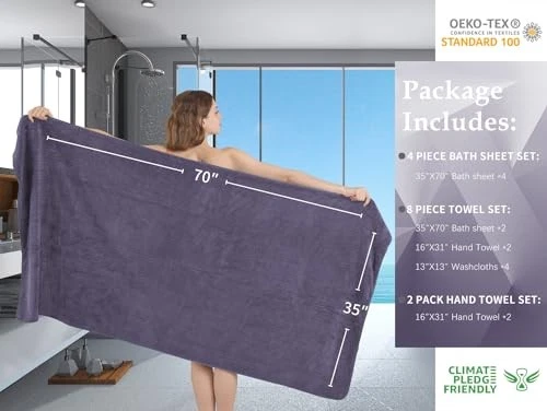 Return Policy Fast Delivery Trusted seller Extra Large Bath Sheet Set of 4,Ultra Soft Fluffy Towel,35”x 70”Oversized Bath Towel Set,Premium Microfiber Bathroom Towel Set Highly Absorbent Quick Dry Shower Towel for Bathroom,Hotel,Spa (Purple) Product Description JUMBO OVERSIZED BATH SHEET:4 Piece Extra Large Bath Sheet size are 35x70 inches.versatile towel collection,home bathroom towels,oversized bath towels Can fully meet your needs,soft bath towels is thick and large,Can completely wrap your body,You will enjoy the experience of softness, moisture absorption, luxury, lightness,perfect for home bathroom, beach, gyms, shower rooms,swimming pools, spas,hotels,salon,college dorm room essentials. SOFT FLUFFY BATH TOWEL SET: 700 GSM super soft bath towel are made up of 100% microfiber material,premium bathroom towel ultimate softness. The hotel quality towel is lightweight and durable,bathroom towel set does not fade,does not pill and it tends to be more stretch, Shrink Resistant, which ensures long lasting durability and reliability,unique pattern bath towels provide a luxurious bathroom design to enhance your bathing design. soft fluffy comfort feel bath towel for your daily use. BETTER WATER ABSORPTION:Highly Absorbent bath towels,feel soft,bathroom towels have high water absorption and fluffy,towels very suitable for hands and body,Soft warm bath towels giving you a comfy experience after bathing, and bath towels can quickly absorb the moisture on your body,towel set is designed to provide users with all their basic bathroom drying needs to wrap around your hair or to dry your body,high quality microfiber ensure optimum softness, fluffiness and wonderful absorbency. LIGHTWEIGHT LASTING DURABLE:Bath towel is lightweight and durable,shower towel edges with professional hemmed seaming finish,prime quality towel set have a reinforced double stitched hem, designed to prevent fraying and tearing while remaining soft. Your towel will be durable and maintain its best condition,The towel is soft and delicate, which is very suitable for people with sensitive skin. The soft looped cloth will not harm your skin. EASY TO CARE:Wash before use,Machine washable, easy to care and clean. These towels are specially processed to make the dryer take less time, thus saving time and energy costs. They flow completely out of the dryer, soft and fluffy for the next time,towels can absorb 10 times their weight in water makes quick drying large surface and easy,This towel can be washed and reused hundred of times which remain soft after multiple wash and dry cycles. Shipping Returns Payment Shipping Shipping is FREE to all addresses other than APO/PO boxes in the lower 48 states. All our stock ships from US-based warehouses. Shipped via USPS or UPS (depending on location and package weight) Unless stated otherwise, all orders will ship within 24-72 hours of your payment being processed. Check our feedback to see the great reviews of FAST shipping we offer. Returns Seller does not accept returns Payment We currently accept payment via eBay managed payments only. Once payment is cleared, we will dispatch your shipment within 1-3 business days. Please refer to the "Shipping" tab for more information regarding shipping speed to your destination.