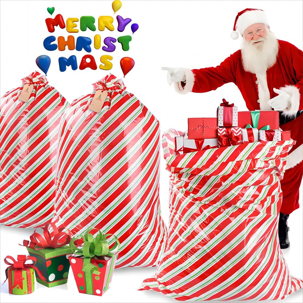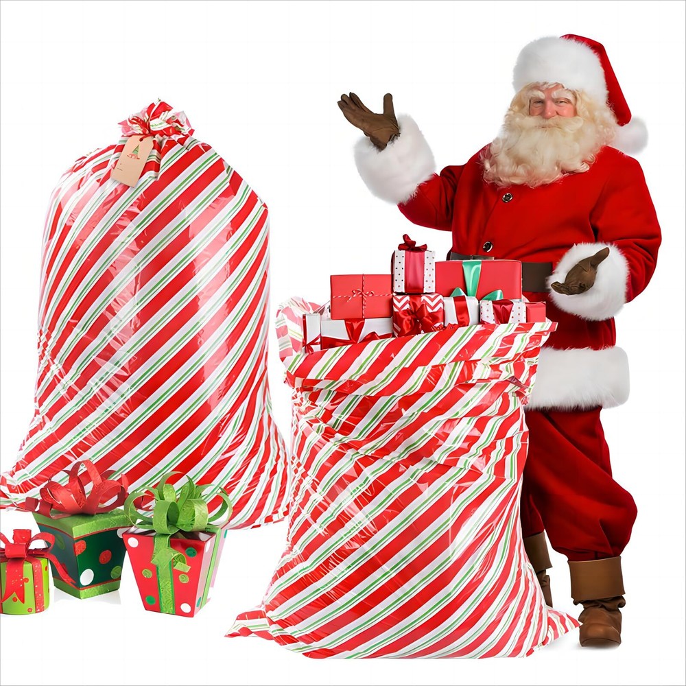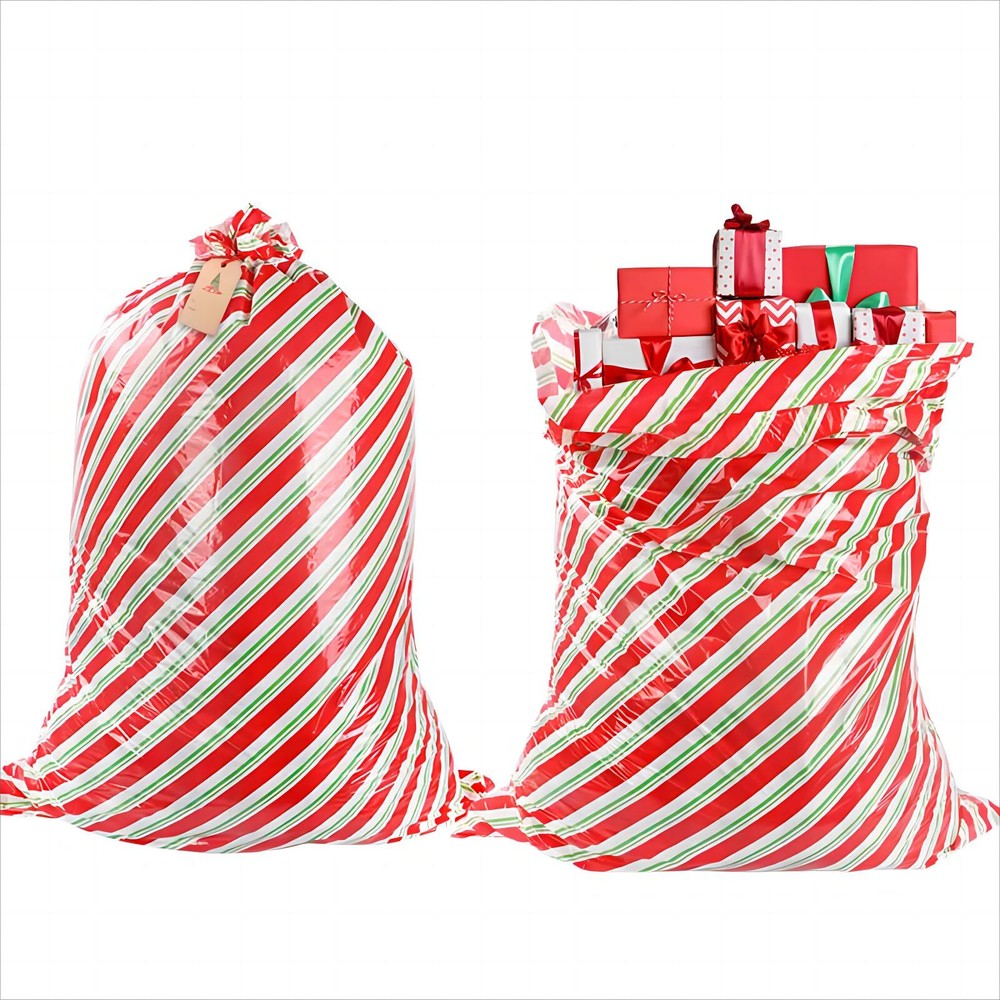 Extra Large 56x36 Red Green Stripe Christmas Gift Bags 2 Pack