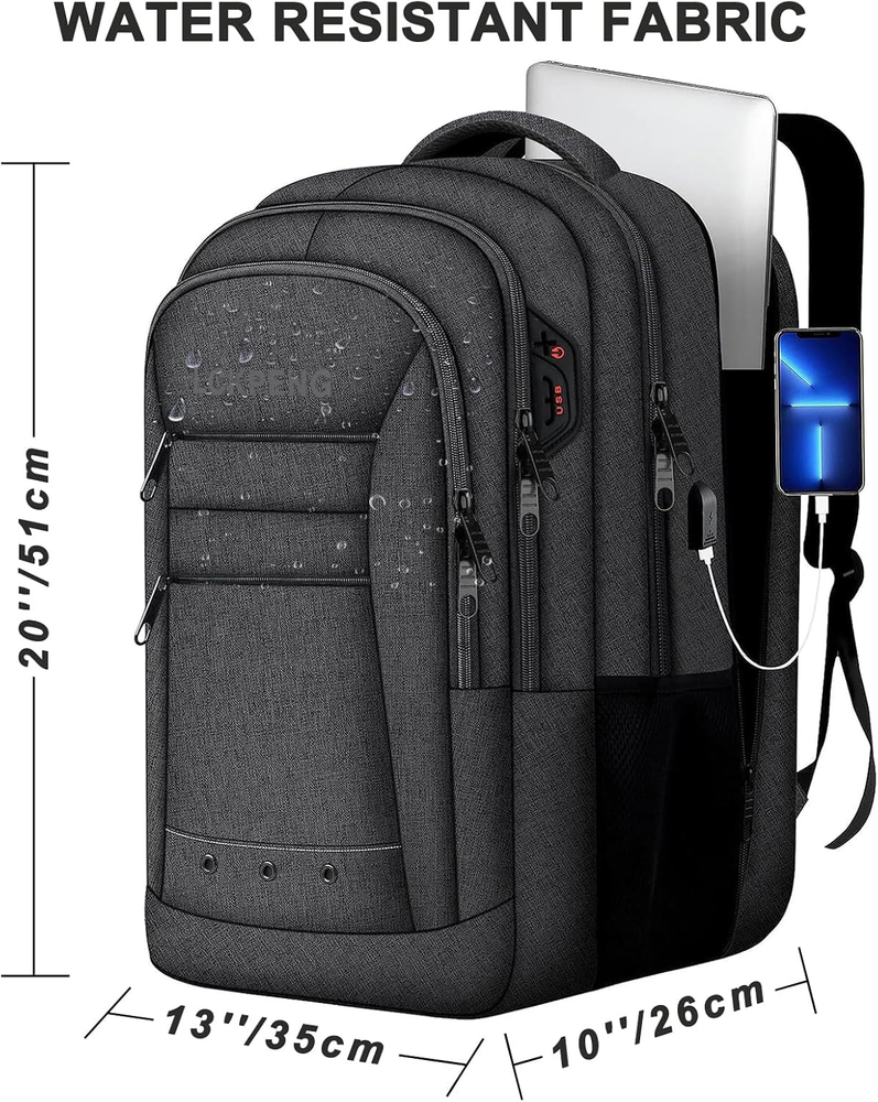 40L Waterproof Flight-Approved Extra Large Travel Backpack Fits 17 Inch Laptop