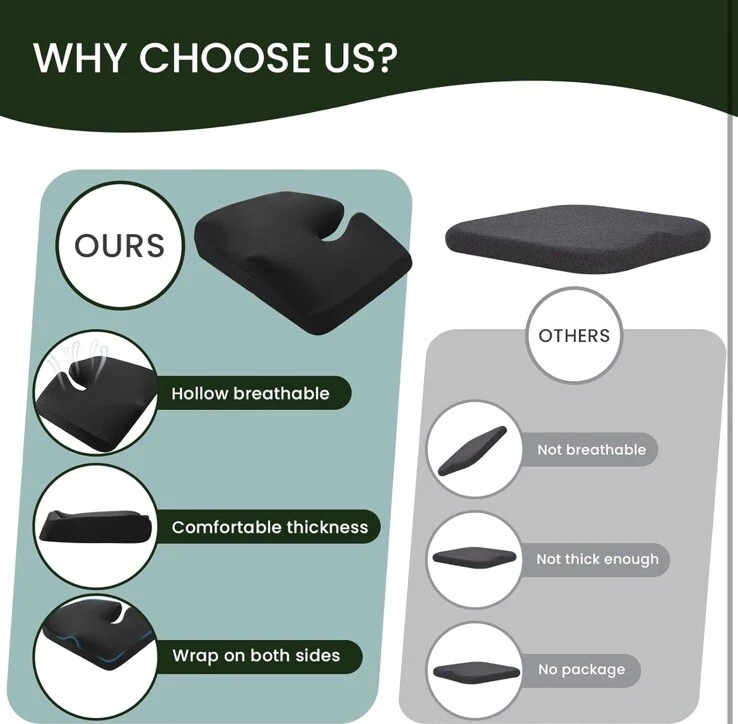 Extra Large Memory Seat Cushion,Multifunctional for Office or Driving Use,Back and Tailbone Relief,for Car, Travel, Office, Wheelchair(21.5 * 17.7 * 4 inches)