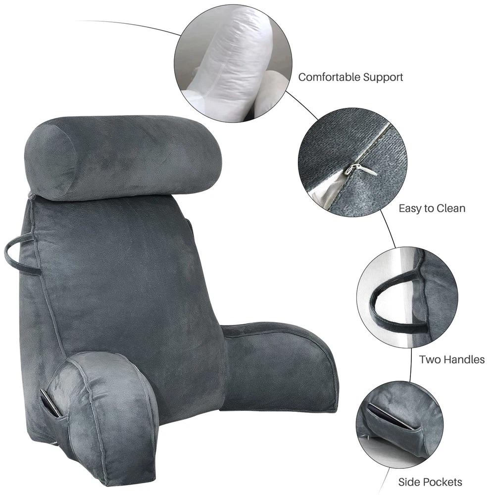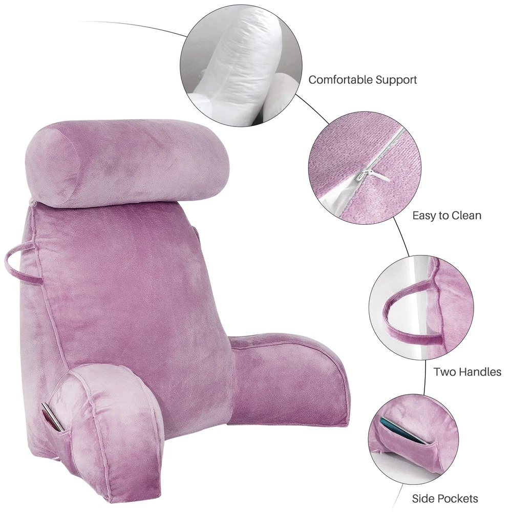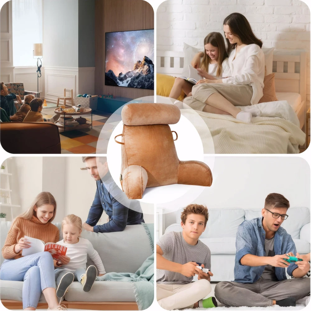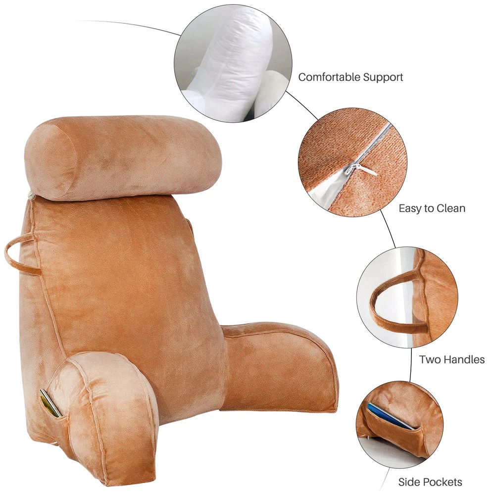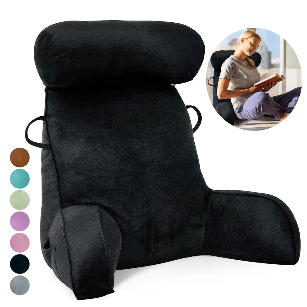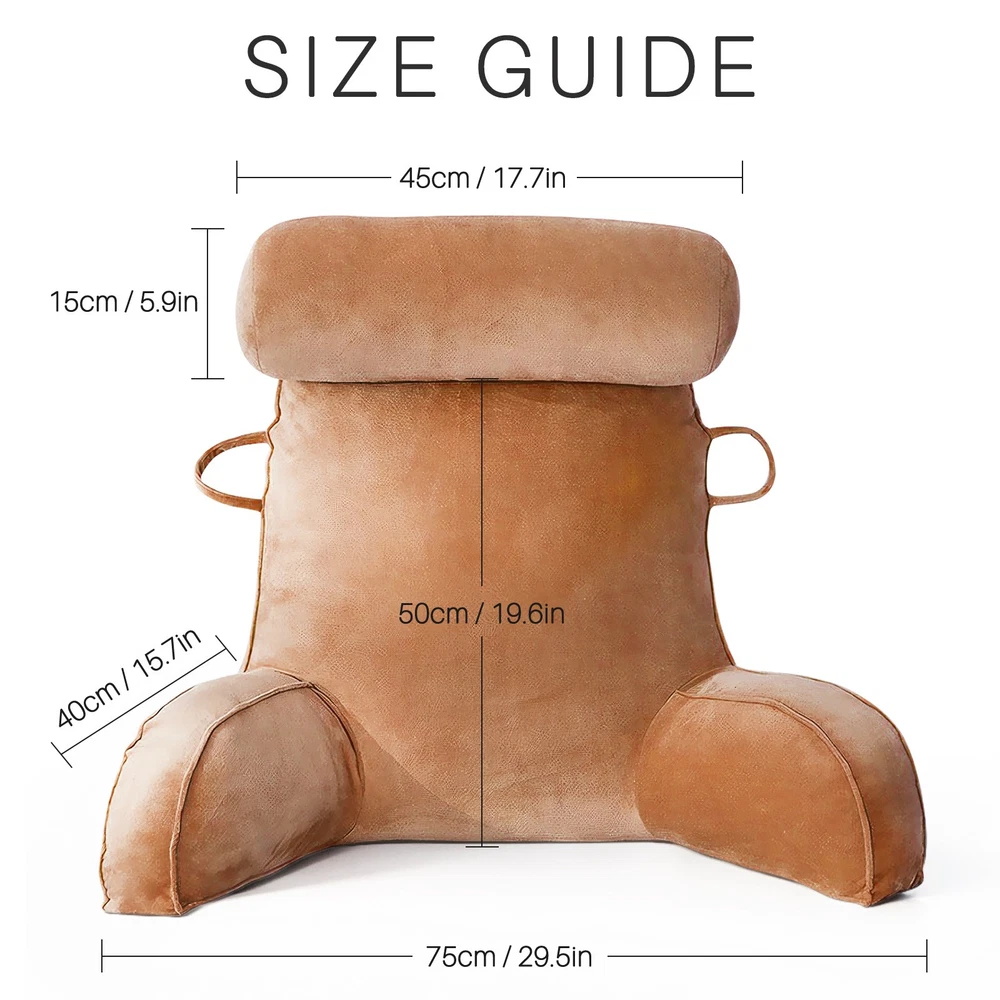 Similar Items Description This reading pillow is an oversized pillow with arms that provides exceptional comfort, relief from aches and pains, and a better sitting posture. Reading pillows conform to the back and arms whether the child’s sitting in bed, or on a chair, couch or the floor. Supports back & arms when reading, watching TV, or relaxing: Filled high quality pure fiber,velvet cover is soft and breathable Bigger and taller size for the ultimate comfort: Overstuffed pillow for a cozy and secure feeling Versatile and convenient: Use it everywhere: bed, chair, couch, floor – two handles are designed on the side makes it easy to carry Reduces aches and pains: Promotes proper posture and lumbar support with arm rests for holding a book, video game controller or tablet As one of the perfect gift choices: it is suitable for adults, teenagers, fathers, mothers, grandpas, grandma, pregnant, etc. Specification: Reading Pillow Size: 75cm * 40cm * 50cm Special Feature:Durable Size:Large Fill Material:Polyester Age Range (Description):Kid / Andult Recommended Uses For Product Reading Use for:Head, Neck Material:Polyester Item Firmness:Soft Number of Pieces:1 Pattern:Solid Multiple use-this back cushion can be put anywhere, such as your bed, sofa, car, office and etc. Washing: Care instructions Hand wash. Do not bleach. Tumble dry, low temperature. Do not iron. Package include: 1 x Reading Bed Rest Pillow Notice: 🔥1. Due to manual measurement, please allow 1-3mm error, thanks. 🔥2. Do not use bleach or wash with same/similar colors 🔥3. Due to the light when the photo was taken or the monitor's display, the picture may not reflect the actual color of the item. We guarantee the style is the same as the picture.