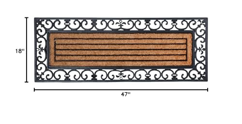 Make the best first impression at your front door with this doormat. It is durable and easy to clean with just a quick rinse under a garden hose. Extra large rectangular traditional rubber and coir doormat with graceful curls. Perfect For Placement At Any Door Entry; Great For Keeping The Dirt Outside While Adding A Decoration That Best Suits Your Style Doormat 46.605 Inch 17.55 Inch 0.702In Black Rubber With Coir No Assembly Required