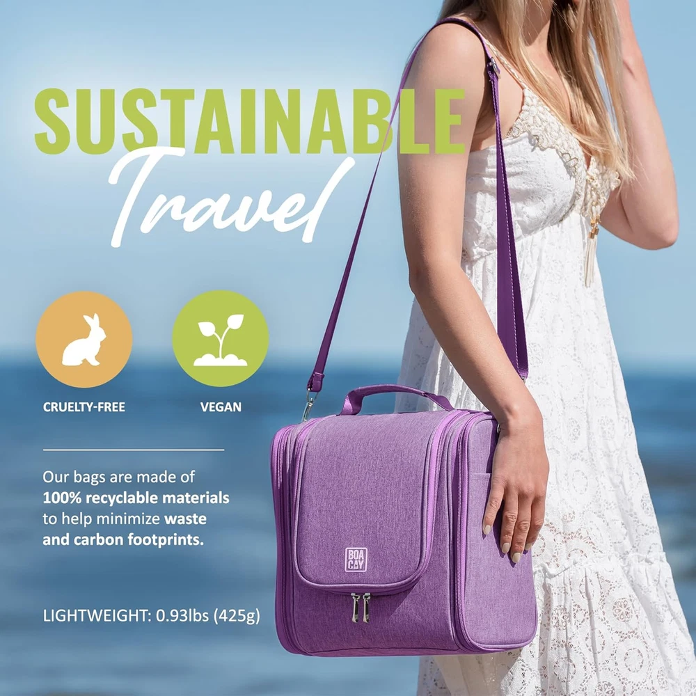 This large travel toiletry bag has a unique design with 21 storage spaces. Its size of 11.6x6x11.4″ allows you to fit in all your items, while the metal hook makes it easy to hang anywhere. If you want a large makeup bag, a cosmetic, or an accessories organizer, Boacay toiletry bag is for you. It is multifunctional, has metal zipper pulls, and it’s made of only high-quality materials. Keep your travel essentials organized and safe with our sturdy extra-large hanging toiletry bag. It is waterproof, washing resistant, and features a foam layer for additional bottle protection. If you need a gift idea, you will love this cosmetic travel bag. Boacay shower bag makes the perfect present for women, men, and even kids, and there are plenty of colors to choose from. Boacay portable travel organizer can also be used as a hygiene & dopp kit, or bathroom bag. It is suitable for home, cruise, gym, camping, or travel use, and it will take away all your worries. Product Description The video showcases the product in use. The video guides you through product setup. The video compares multiple products. The video shows the product being unpacked. PRODUCT COMPARISON Add to Cart Add to Cart Add to Cart Add to Cart Customer Reviews 4.7 out of 5 stars 6,348 4.6 out of 5 stars 15,848 4.6 out of 5 stars 2,142 4.6 out of 5 stars 2,366 Price $19.99 $ 19 . 99 $15.99 $ 15 . 99 $19.99 $ 19 . 99 $9.99 $ 9 . 99 Dimensions 11.61 x 11.42 x 5.98 inches 8.5 x 4.7 x 10.2 inches 11.42 x 3.78 x 7.48 inches 8.8 x 4.3 x 6.9 inches Weight 15 ounces 11 ounces 12.3 ounces 3.21 ounces Water Resistance Waterproof Waterproof Waterproof Waterproof Hanging Bag ✔ ✔ ✔ ✘ Metal Zippers Pulls ✔ ✔ ✔ ✔