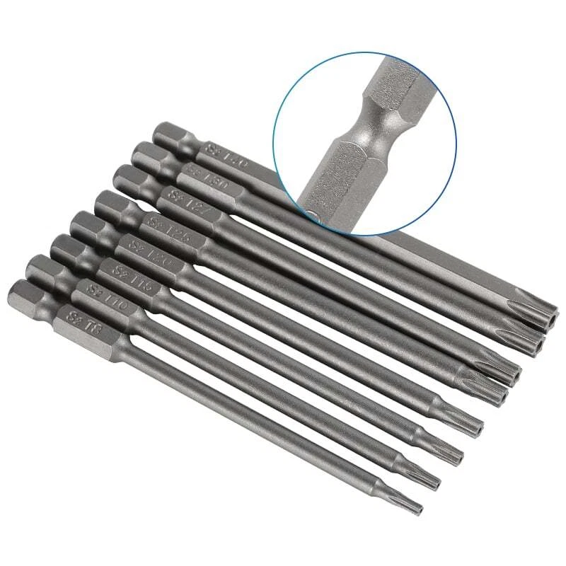 This Torx screwdriver bit set is a game-changer! The extra-long 100mm bits provide excellent reach, and the magnetic heads keep screws securely in place. Made with industrial-grade S2 alloy steel, these bits are incredibly durable and resist wear even under heavy use. The precision CNC machining ensures a perfect fit every time, preventing stripping or slipping. The heat-treated construction adds extra strength, making them ideal for tough jobs. Whether you're a pro or a DIYer, this set delivers top-notch performance and reliability. Love that it's made in the USA—quality you can trust!