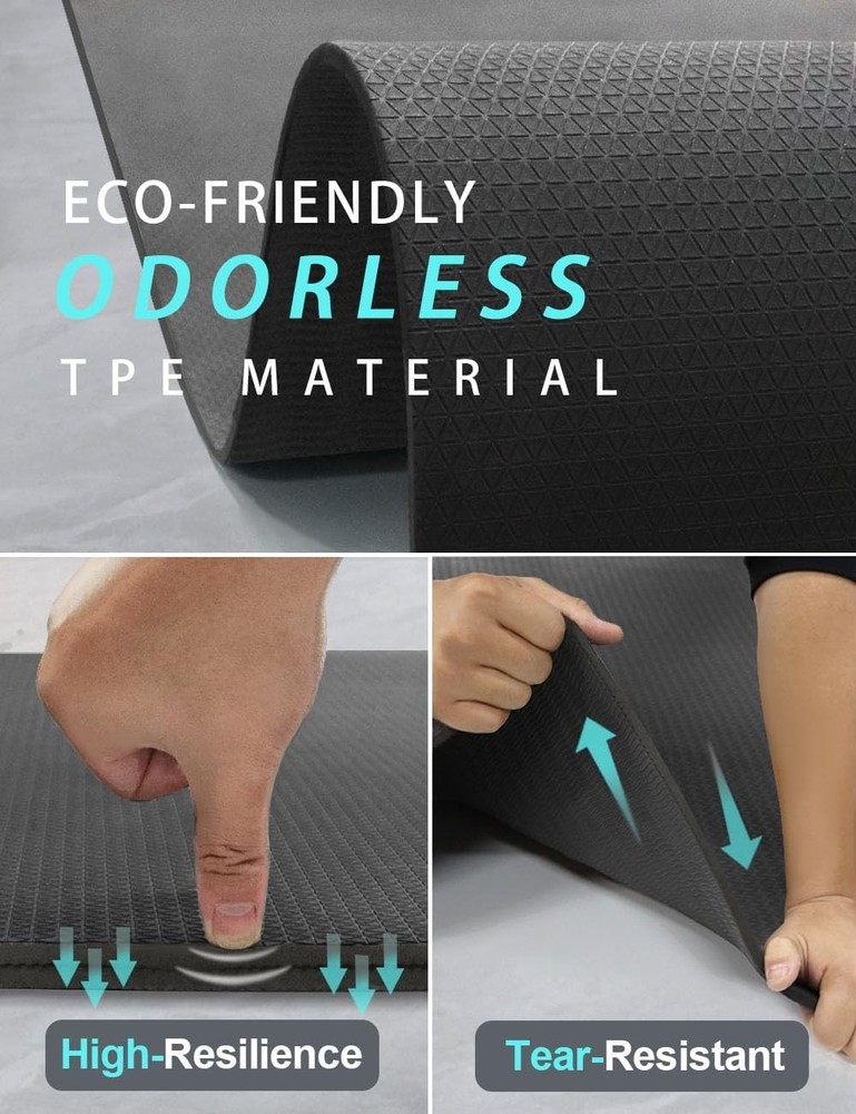 1. This yoga mat is a game-changer! The extra length and width give plenty of space to move freely, while the 7mm thickness provides amazing cushioning for joints. The TPE material feels premium—no weird smells, just soft yet supportive. The double-sided grip keeps it firmly in place, even during sweaty flows, and the textured surface prevents slipping. It unrolls smoothly and stays flat, making it perfect for tall yogis or anyone who wants extra room. Definitely worth the investment for serious practice!