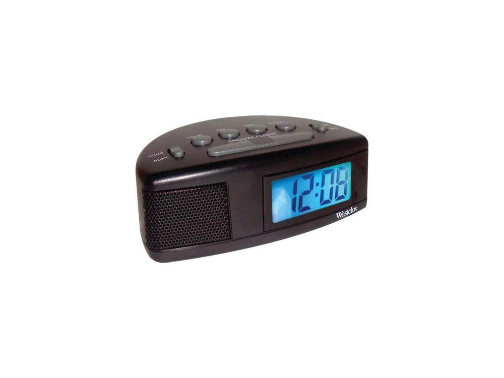 WAKE UP ON TIME, EVERY TIME: Adjustable super loud alarm ensures reliable wake-ups, perfect for heavy sleepers or busy professionals. COMPACT AND CONVENIENT DESIGN: Lightweight and small, ideal for bedside tables, desks, or travel without taking up much space. EASY-TO-READ LCD DISPLAY: Offers clear visibility of the time from various angles, designed for practicality and simplicity. LIGHTED DIAL ON DEMAND: Illuminate the screen during nighttime for quick time-checking without disrupting your sleep environment. MODERN BLACK CASE: A sleek, stylish design that blends seamlessly with any decor, offering functionality and aesthetic appeal. Digital alarm clock with 1/2-inch LCD screen and extra loud alarm Oversized numbers for quick reading in the dark Includes snooze feature and press-on blue backlight Optional lower alarm volume for lighter sleepers Runs on 1 9V and 2 AAA batteries for easy portability