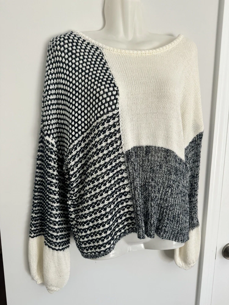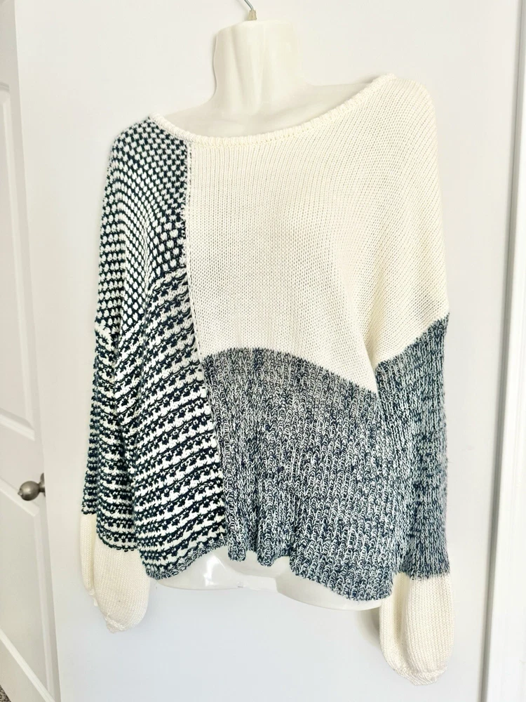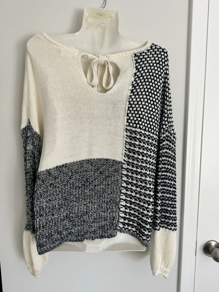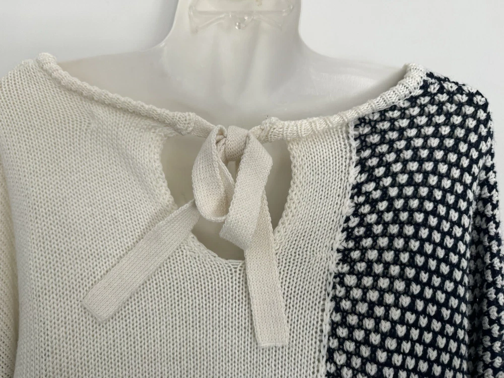 Extra Small Blu Pepper Color Block Tie Back Relaxed Sweater