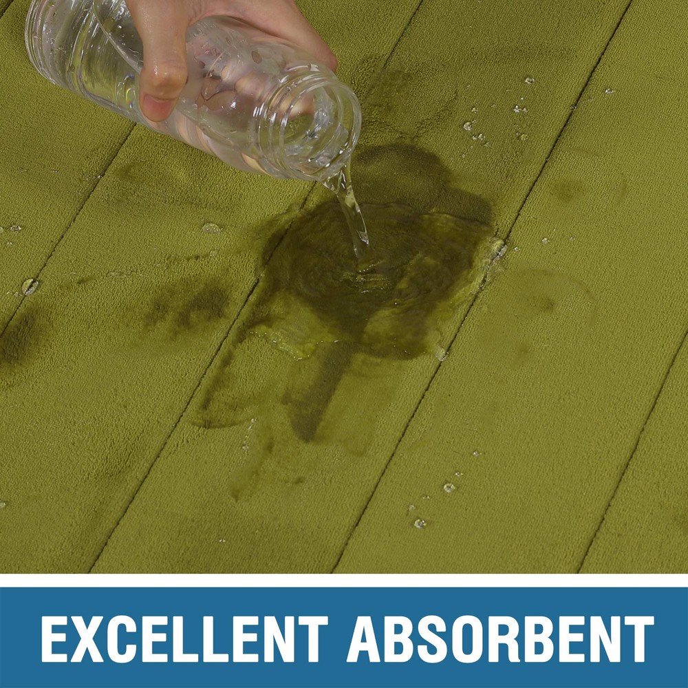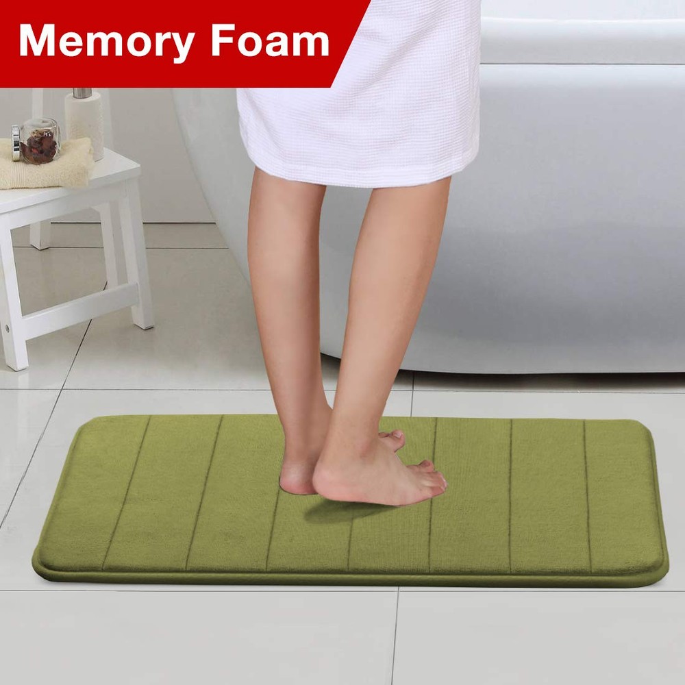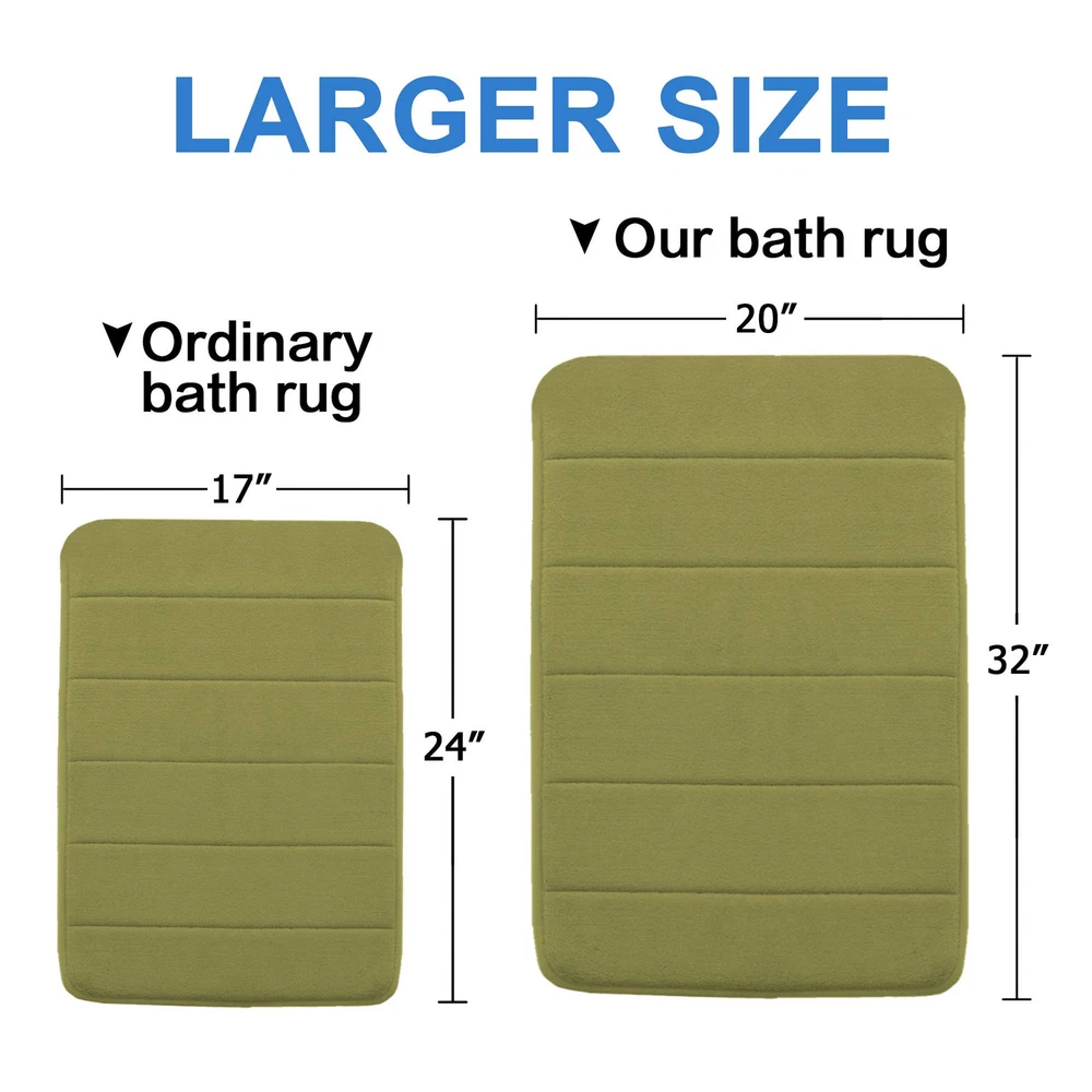 【Different production batches bring slight differences in packaging or rug bottom color】FOOT MASSAGE: These bath mat rug set is crafted from ultra soft coral fleece, fill into innovated memory foam. Backed with non slip rubber bottom, strong and durable. Put your feet out of the shower on these bath runner to give your feet the warm, comfortable home SPA feeling GREAT ABSORPTION: These cozy plus bath mats/rugs have been used with special technology on quick absorbent and fast drying. Spruce up your powder room for maximum serenity and warmth ANTI-SLIP: Our 2.0 new version non-skid, no slip, PVC rubber backing is waterproof, perfect use on hardwood floor or floor ties, hassle free for water dampness. Skid-resistant rubber base ensures that the bath mat grips firmly to the floor for safety STANDARD MEAS: These luxurious bath rugs for bath room/kitchen/entry are constructed with dimensions 32 inches wide x 20 inches long. Features 1 inch of high density and thickness premium memory foam, vary with multi colors and patterns EASY CLEANING: Machine wash separately in cold water using mild detergent. Use only non-chlorine bleach when needed. Also you can simply pick up and shake rug to freshen. Enjoy the ultimate performance bath rugs/mats from USPTO brand