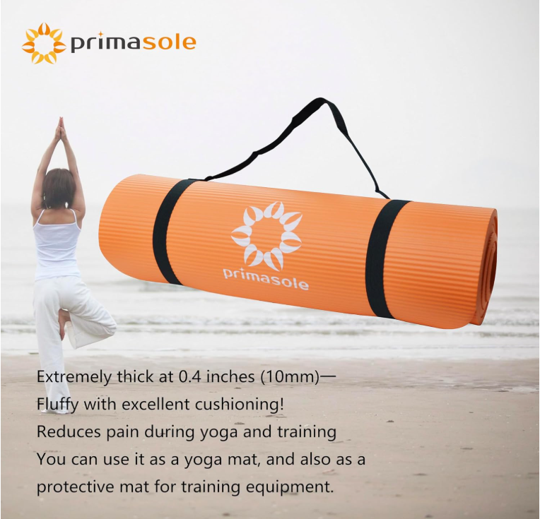 About this item 【TRUSTED BRAND 】Primasole is a fitness brand established in April 2019. We have a lineups of yoga mat, Exercise yoga ball, Balance disc, Foam Roller that helps you incorporate fitness into your daily life. 【SIZE & LIGHTWEIGHT】: Mats Size is 72 × 24 inches. Super light weight is only 1.8 lbs. ½ extra thick (10㎜) extra cushion provides comfort stability and Posing. Perfect mats for hard floor or carpet at home and gym. It is more suitable for people with sensitive or injured joints. NBR Material is a non-toxic synthetic rubber material and provide soft, cushioning. 72 inch is large enough to do most of exercises 【NON-SLIP, SECURE AND STABLE】: Embossed surface provides non slip, comfortable and ensures stability during all types of training. Ideal for core strength, posture, balance, and flexibility exercises. Perfect for hot yoga, ab crunches, or Pilates as well as yoga floor and standing poses. 【CHOICE OF FOUR COLORS】: Coordinate with any mood, style, or preference. NBR Foam Material resists peeling, fading, or tearing and wipes clean for easy everyday use and cleaning. Mat comes in variety of colors for women, men, or kids Color comes Pink, Gray, Orenge and Bule